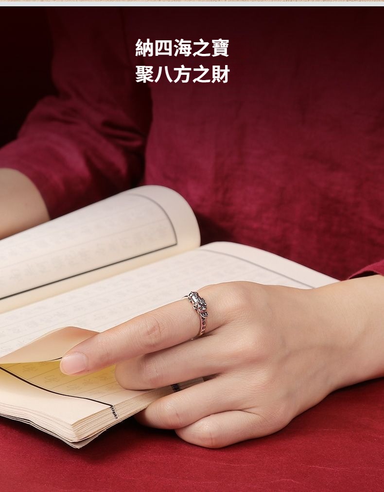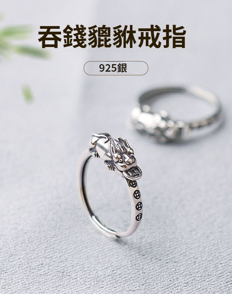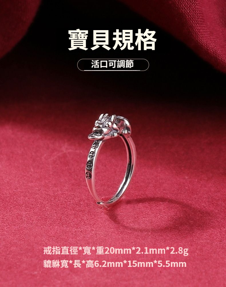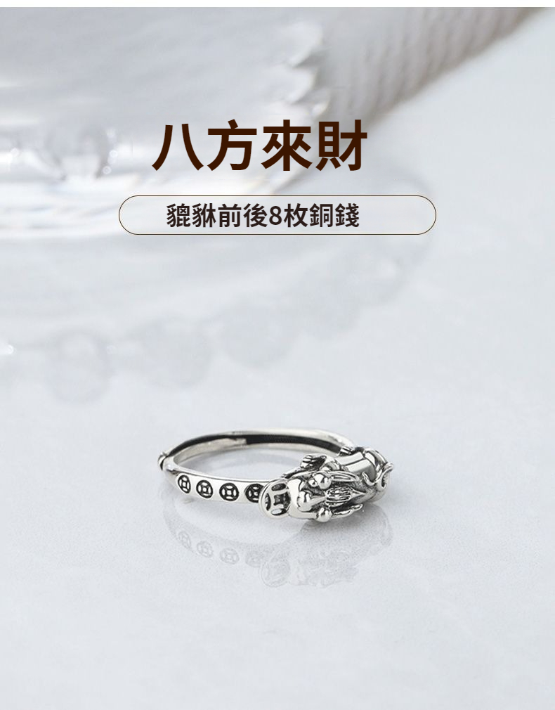 s925純銀招財貔貅戒指旺夫守財貔恘小眾設計復古轉運食指戒 NT$ 888