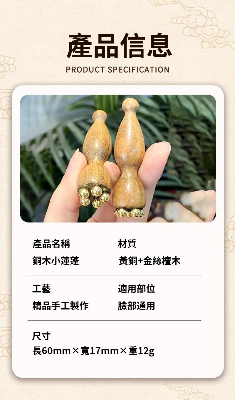 小蓮蓬黃銅金絲檀木臉部按摩器臉部美容眼部撥筋棒點穴護膚工具 NT$ 790