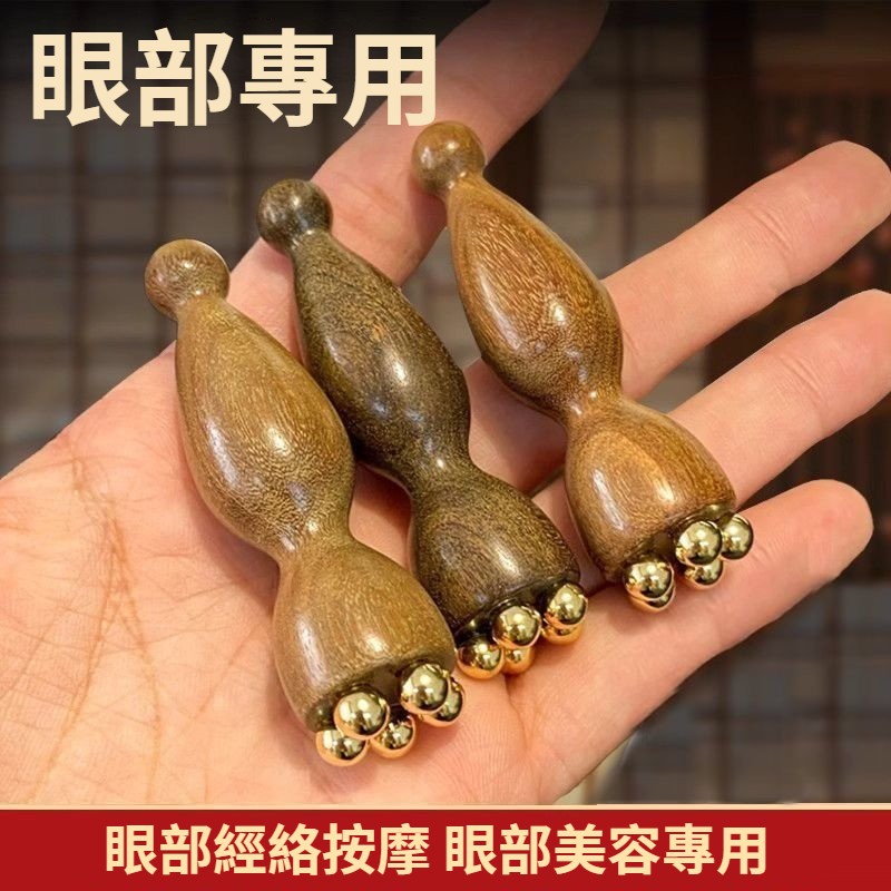 小蓮蓬黃銅金絲檀木臉部按摩器臉部美容眼部撥筋棒點穴護膚工具
