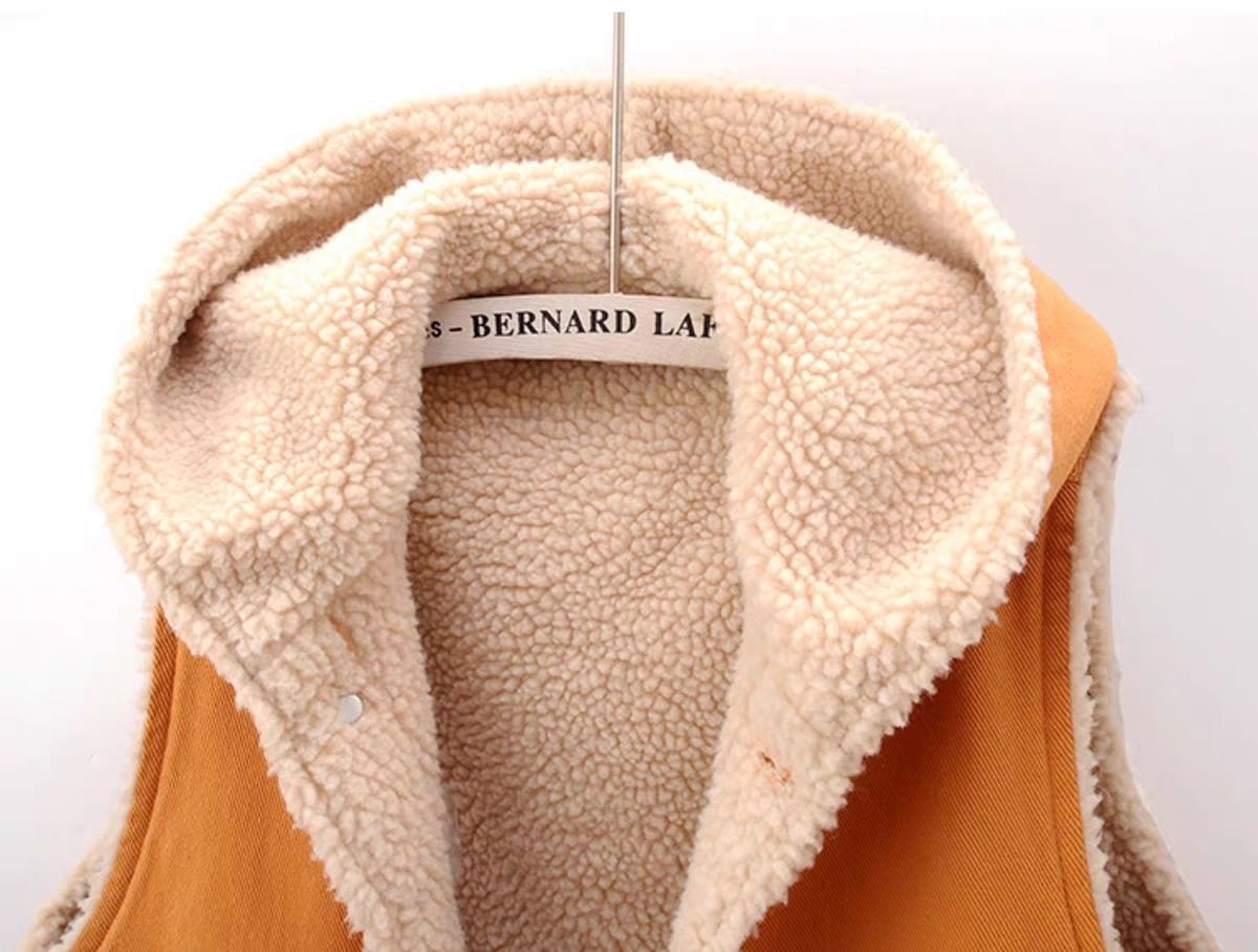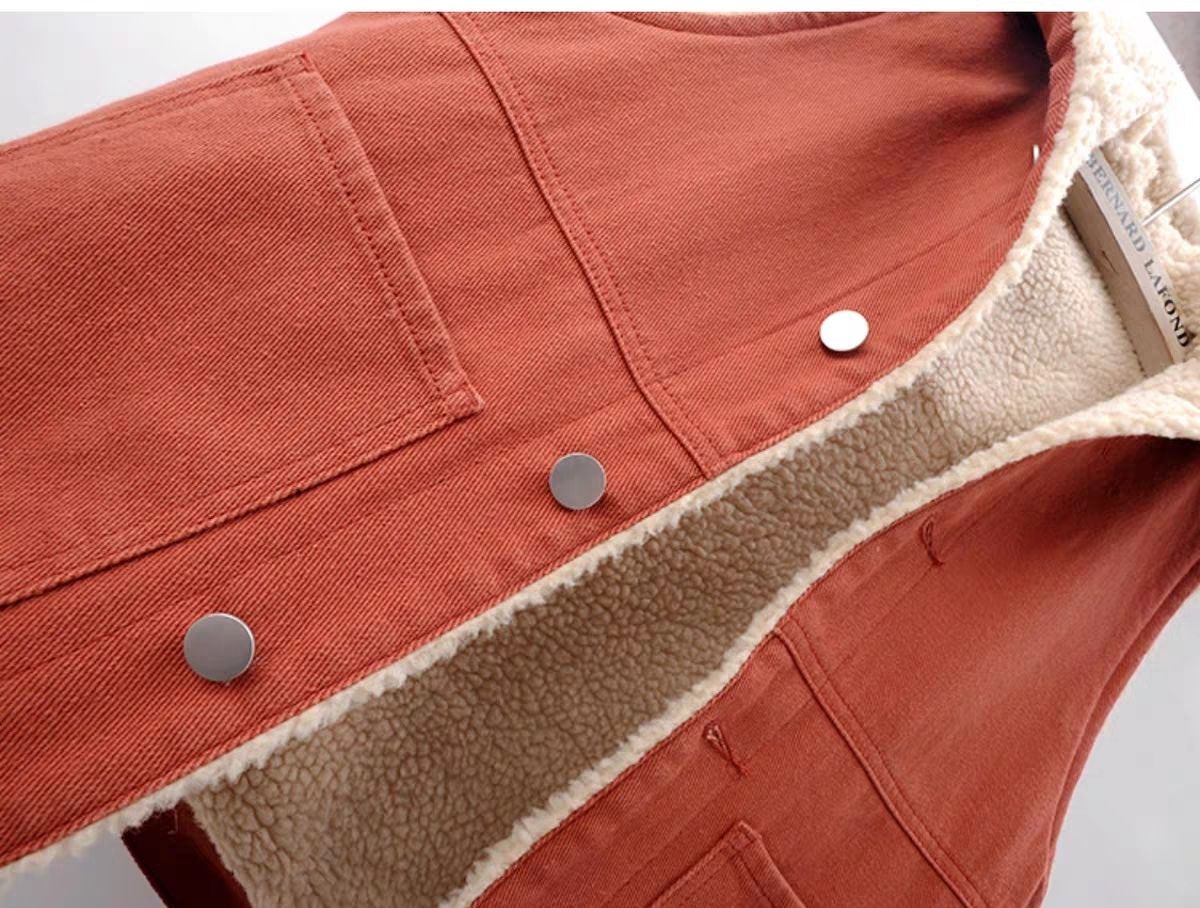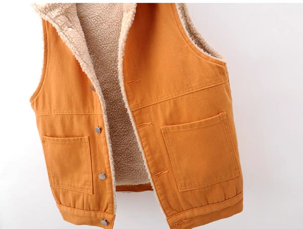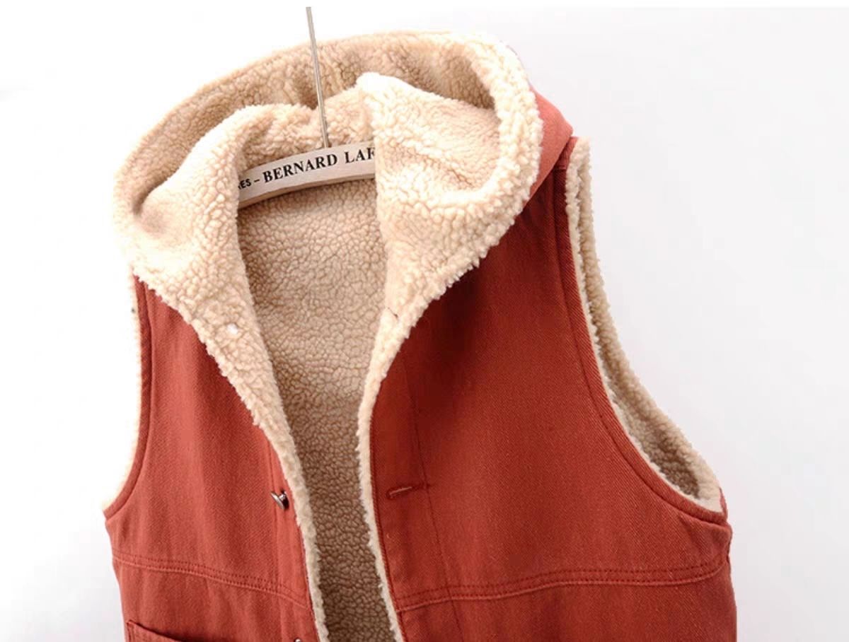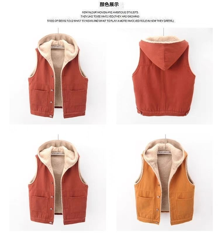 第 2 件 : 2025秋冬新款小羊毛加絨加厚連帽牛仔馬甲女寬鬆簡約馬夾背心坎肩