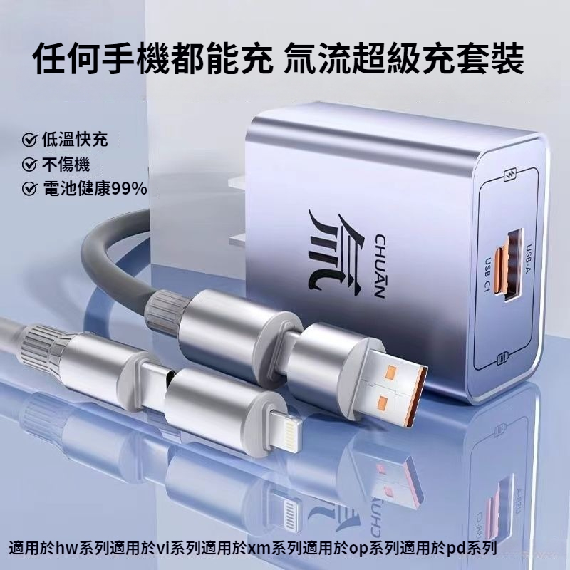 2025新款氚流超級充雙口充電頭組四合一數據線適用蘋果安卓華為