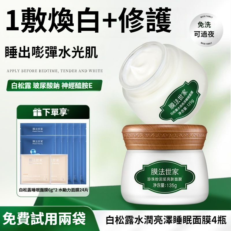 【滋養美白】白鬆露睡眠面膜4瓶+水動力24片:2399