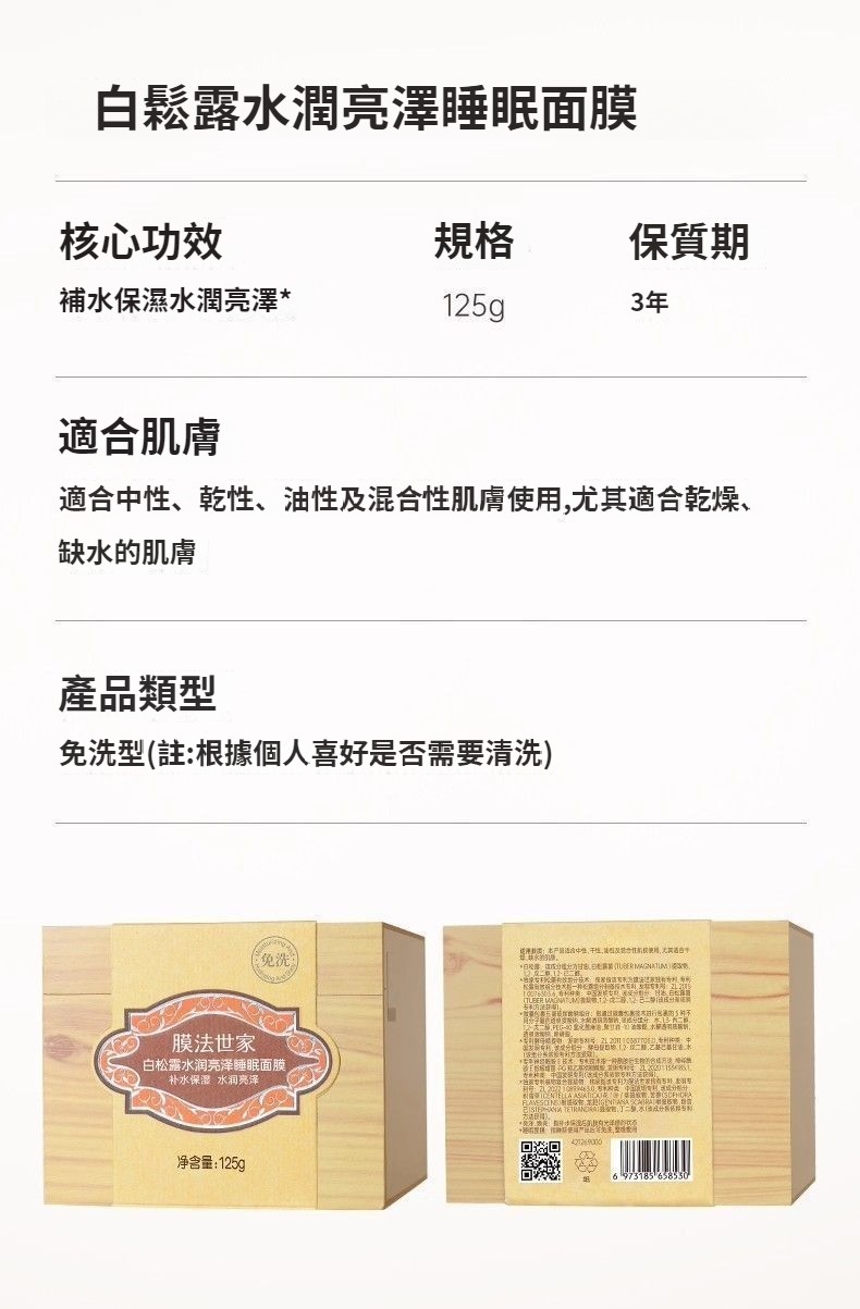 白松露睡眠面膜煙醯胺嫩白提亮深層保濕免沖洗塗抹式面膜 NT$ 1198