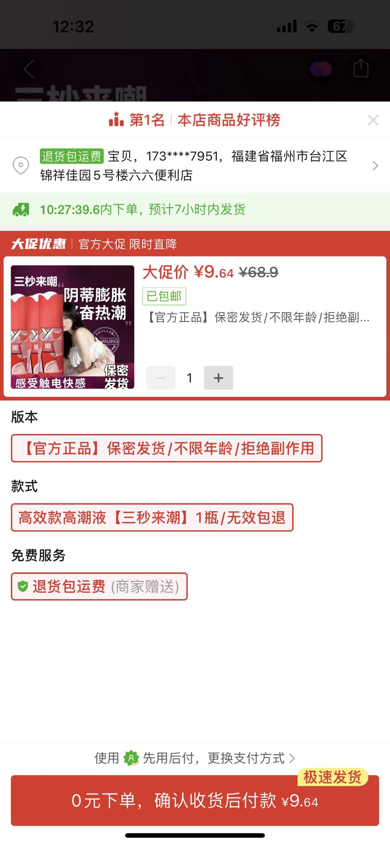 ①黃金瑪卡3瓶(瓶裝)②粉嫩女士快感液1瓶