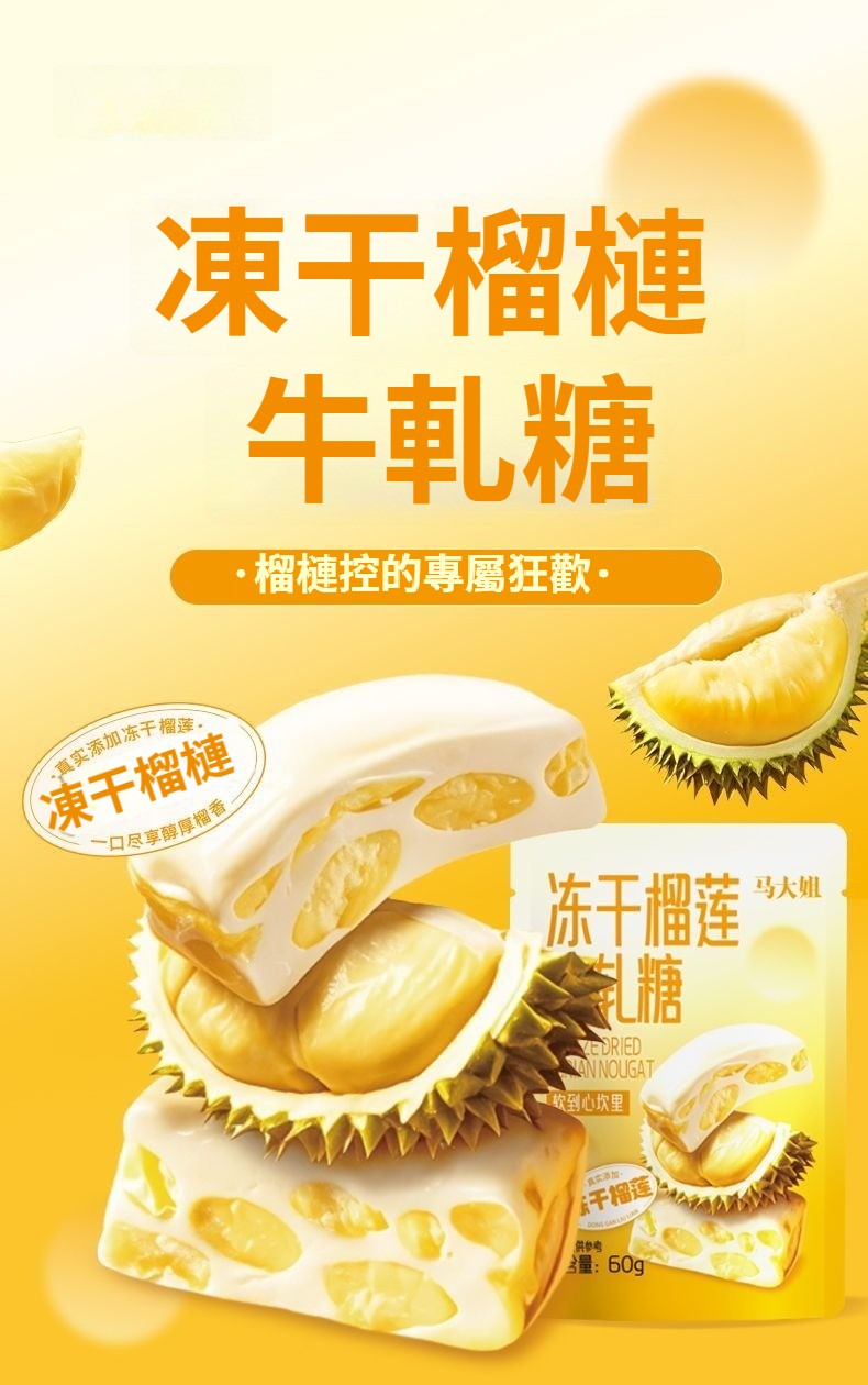 凍干榴蓮牛軋糖榴蓮味糖果宿舍辦公室小零食