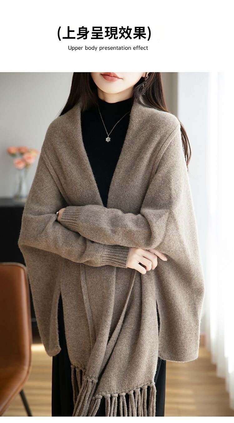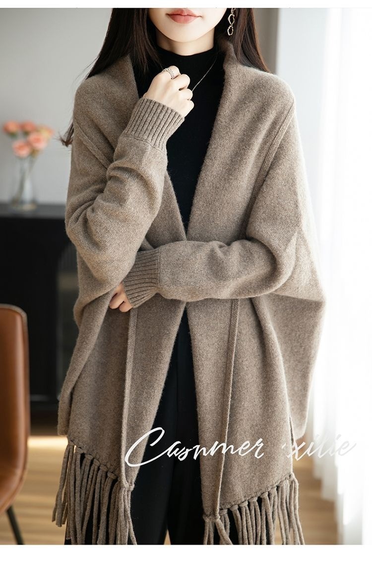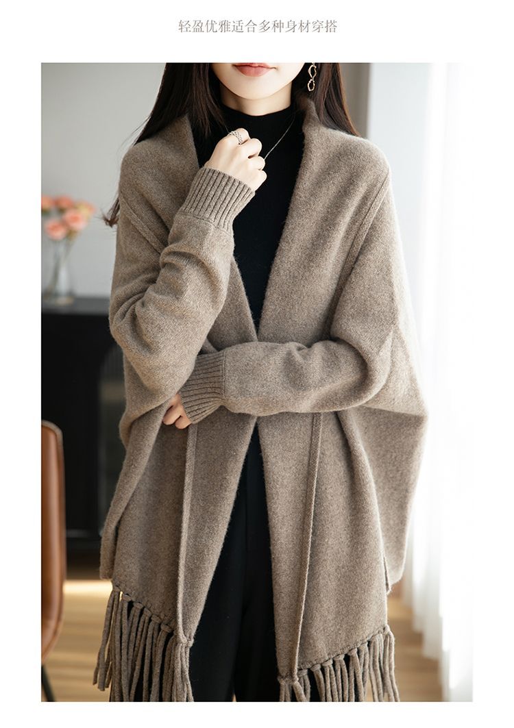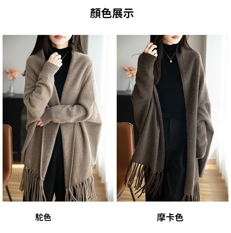 2025羊毛高端純羊毛流蘇斗篷寬鬆披肩針織外套時尚外套開襟衫