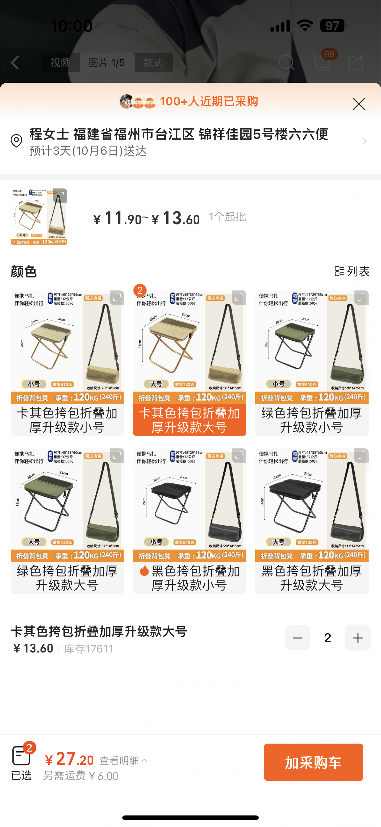①鹽焗粉20包+②背包折疊椅子大號卡其色2個+③凍干紅棗枸杞銀耳羹1盒