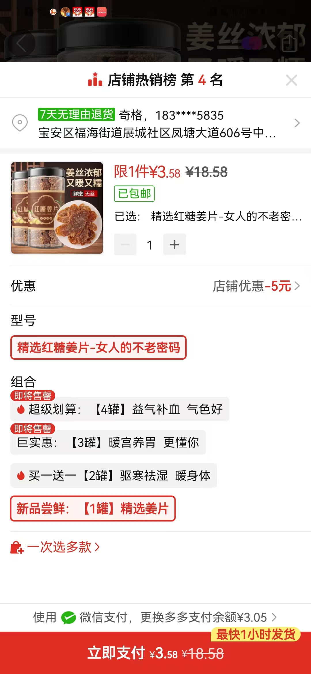 ②紅糖薑片 3.58 元 https://mobile.yangkeduo.com/goods2.html?ps=BX3yTOvZnU