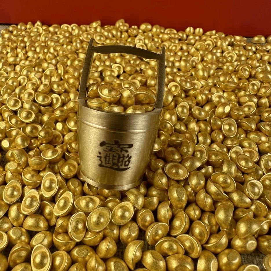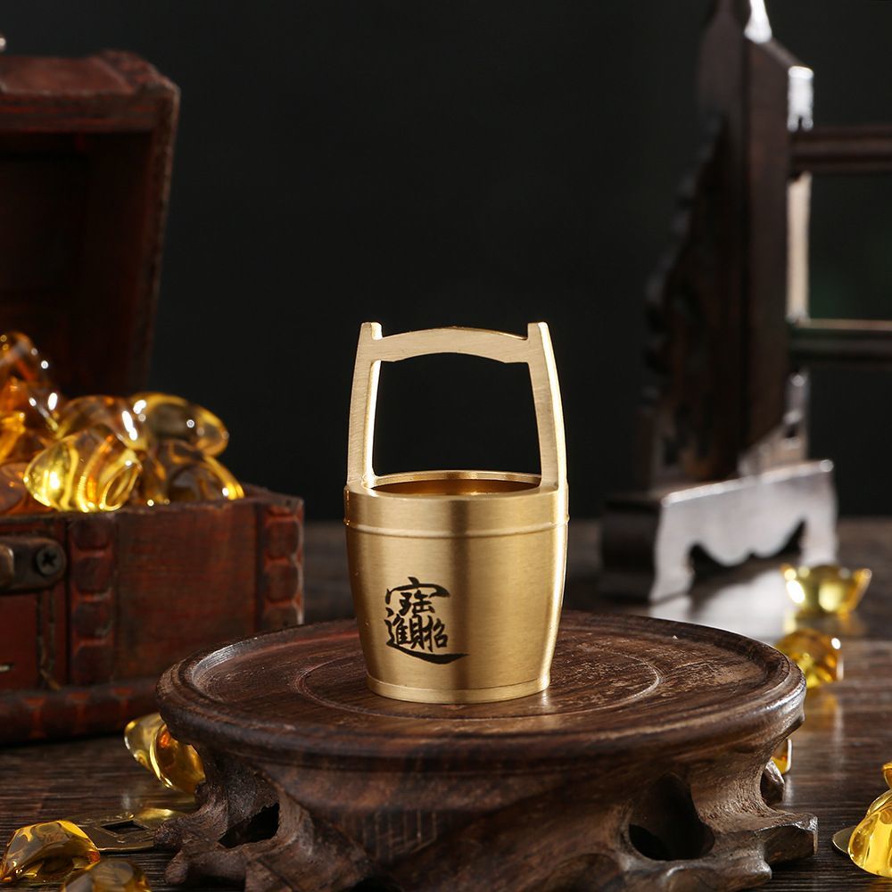 黃銅熱賣招財進寶一桶金擺件創意聚寶盆辦公室書房客廳金財米桌擺