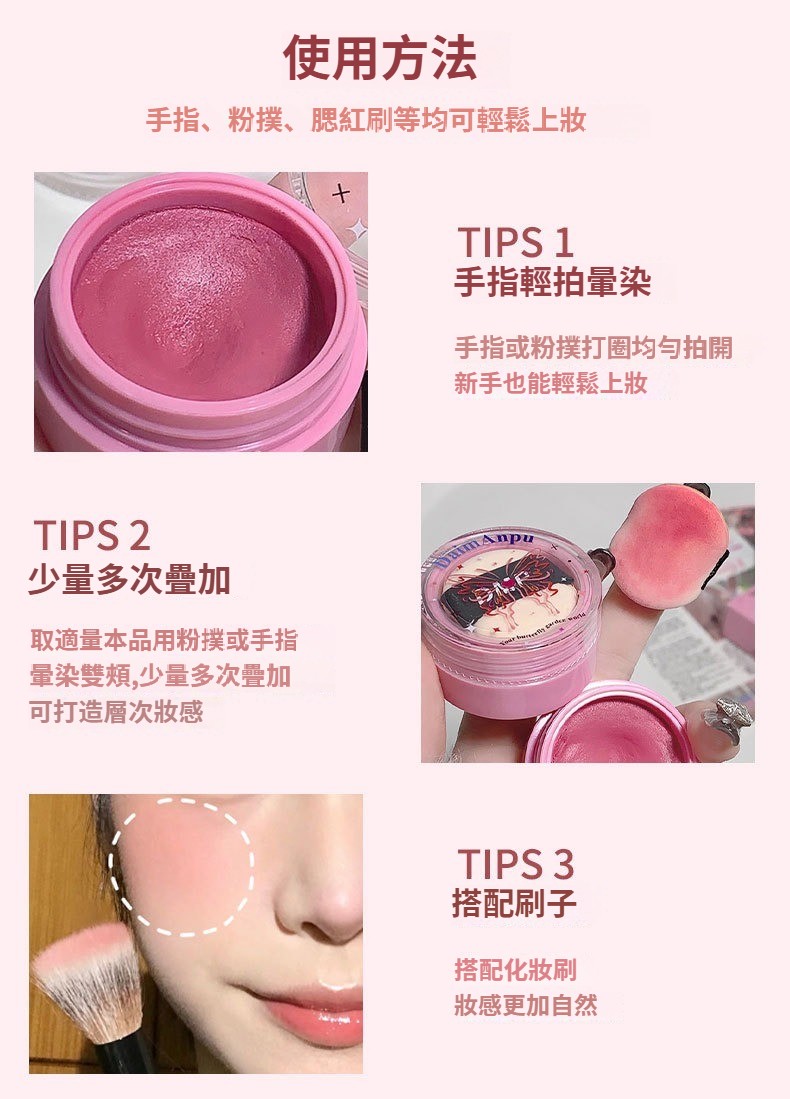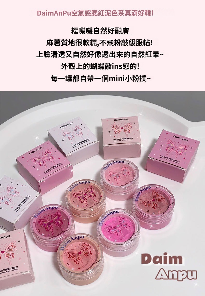 DAIMANPU空氣感腮紅泥膨脹色霧面顯色細膩自然裸妝單色胭脂膏