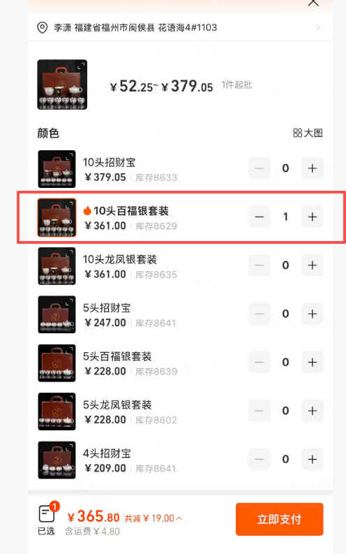 10头百福银套装 1套(拍照过来核对没问题再发货)