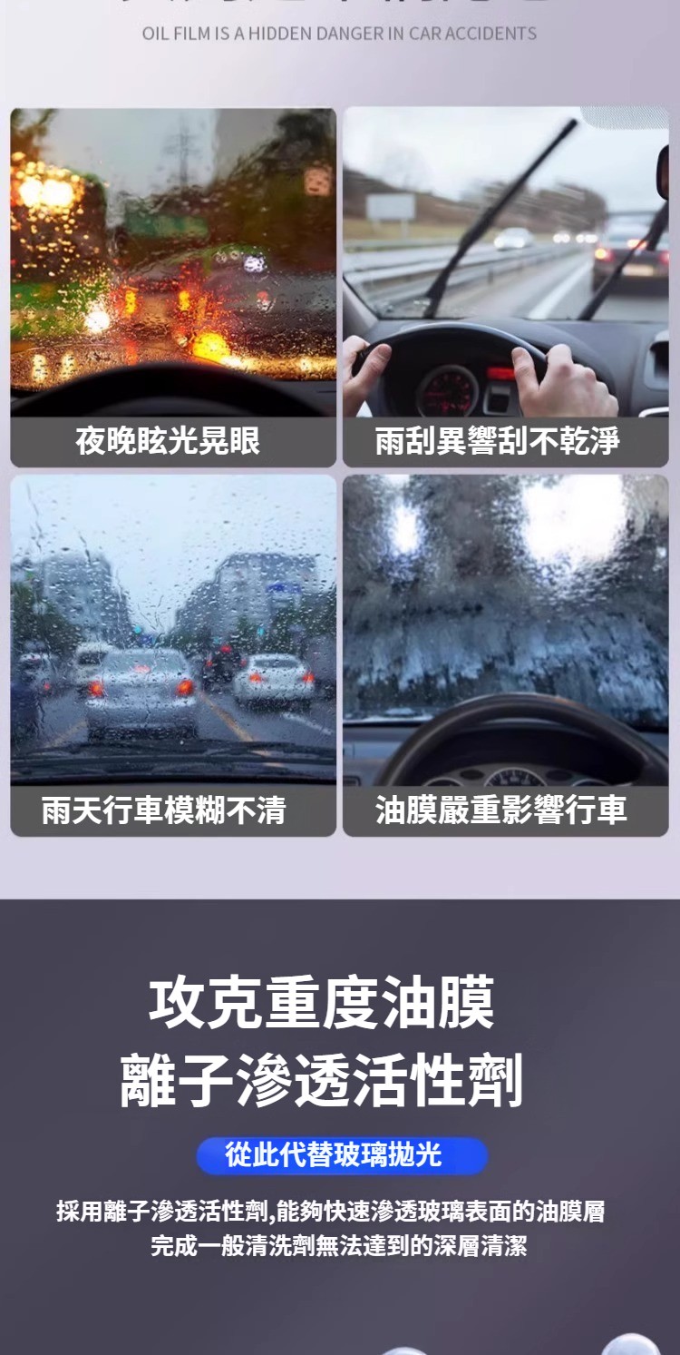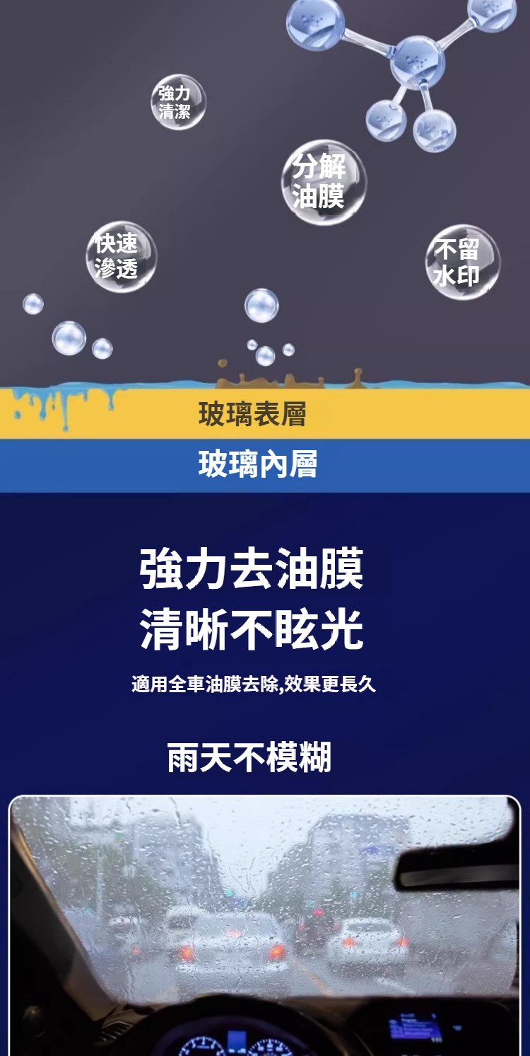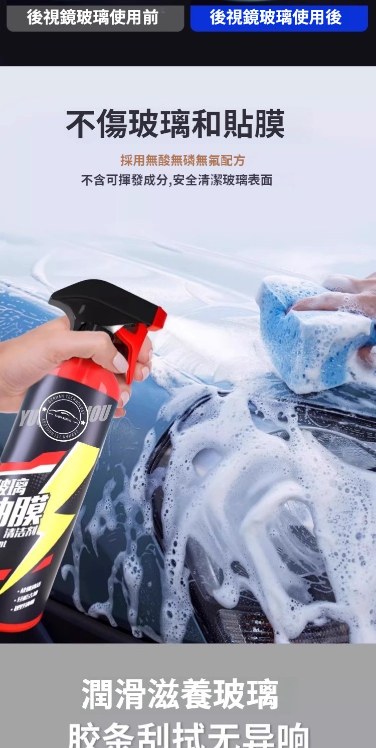 汽車玻璃油膜清潔去除劑前擋側窗後視鏡疏水防雨清洗鳥糞祛油污劑