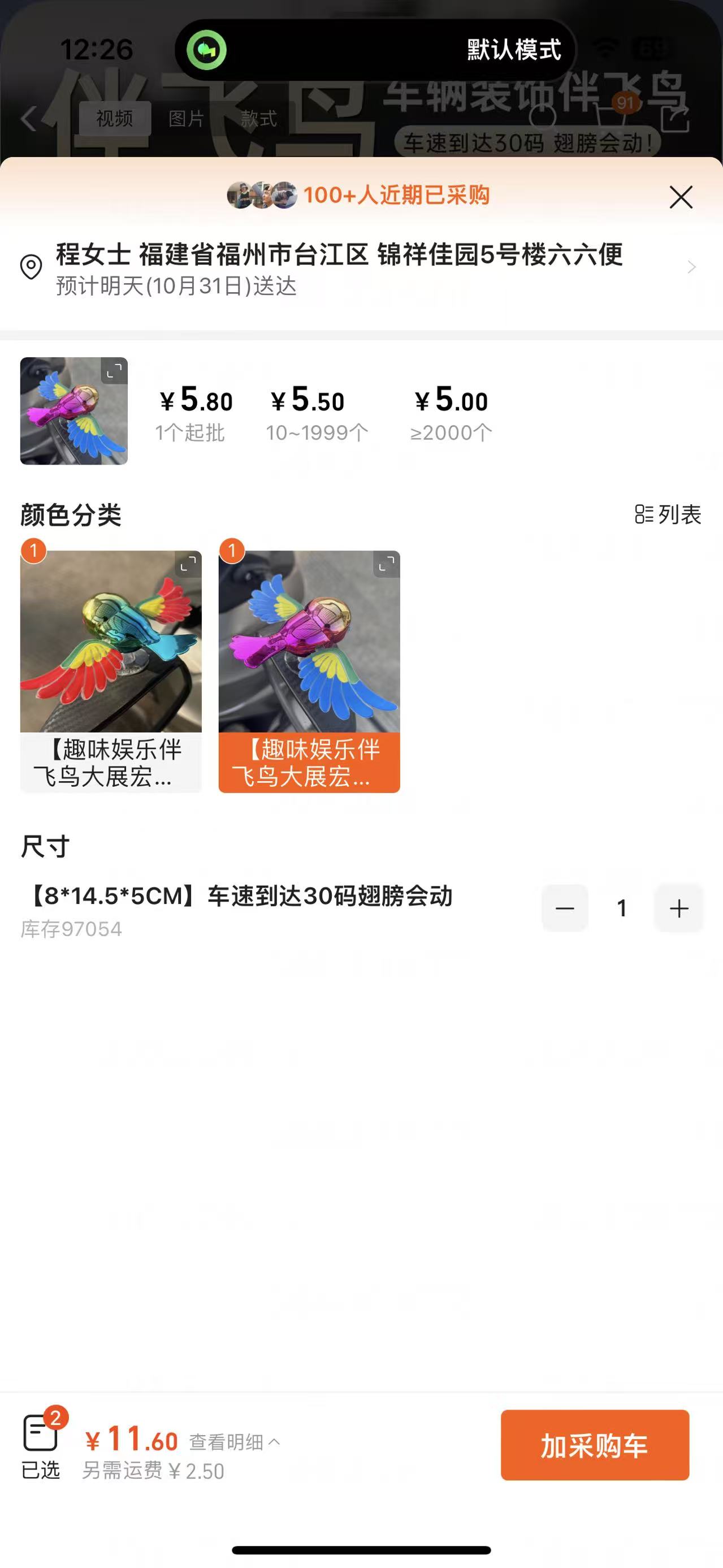 【车载伴飞小鸟车外汽车摆件电动车摆件后视镜车顶装饰品新奇特玩具】复制¥TWqO9Hu64OXak¥,打开【手机阿里】或【支付宝-点首页进行搜索】查看:https://qr.1688.com/s/pQL2zRDA CZ5920