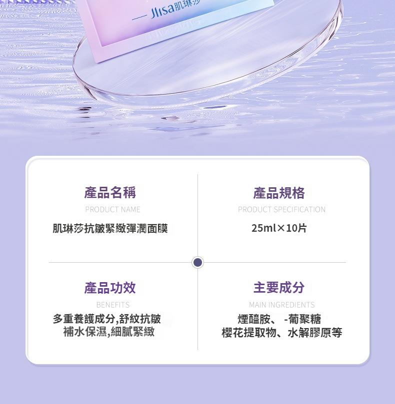 肌琳莎抗皺緊緻彈嫩面膜盒裝補水保濕菸鹼醯胺面膜抗皺面膜