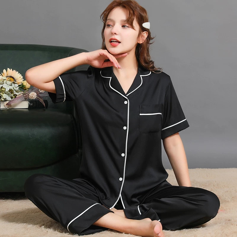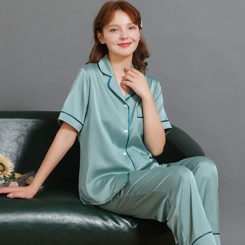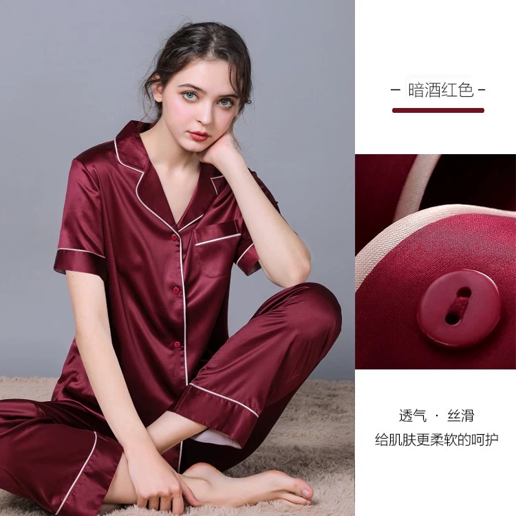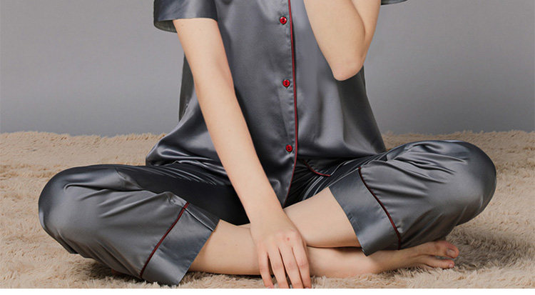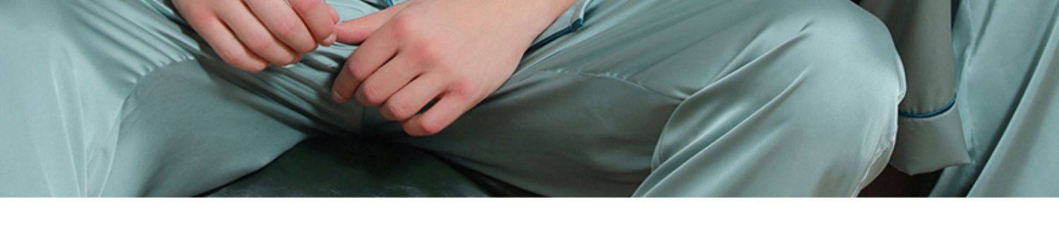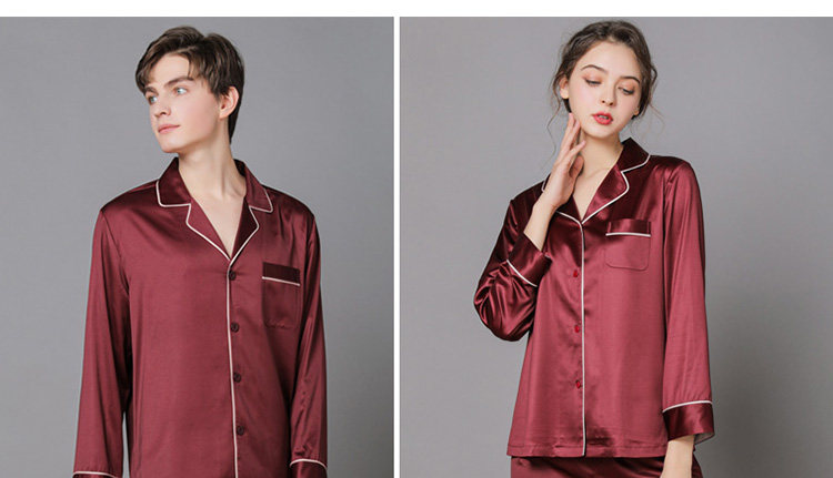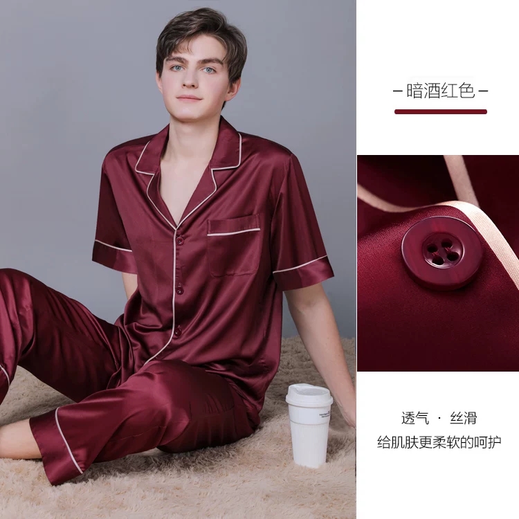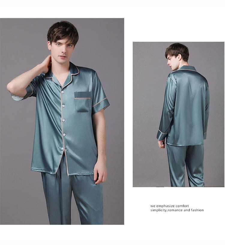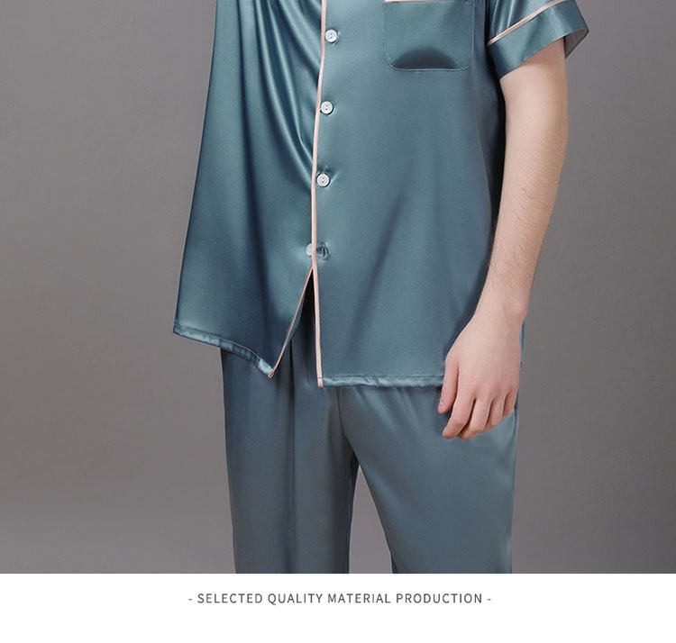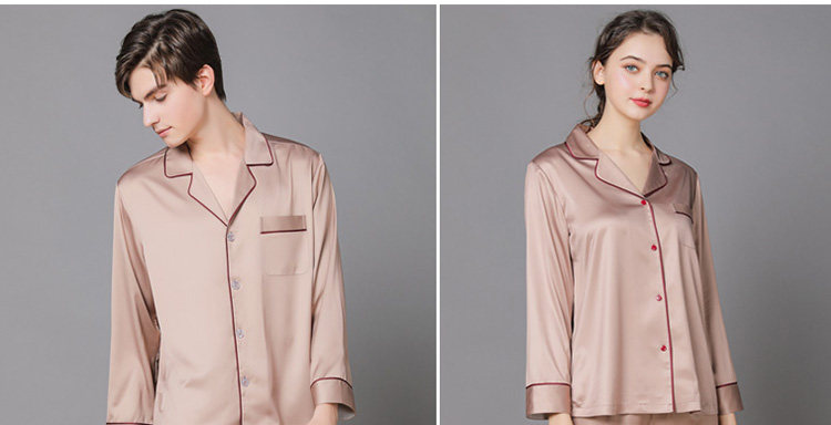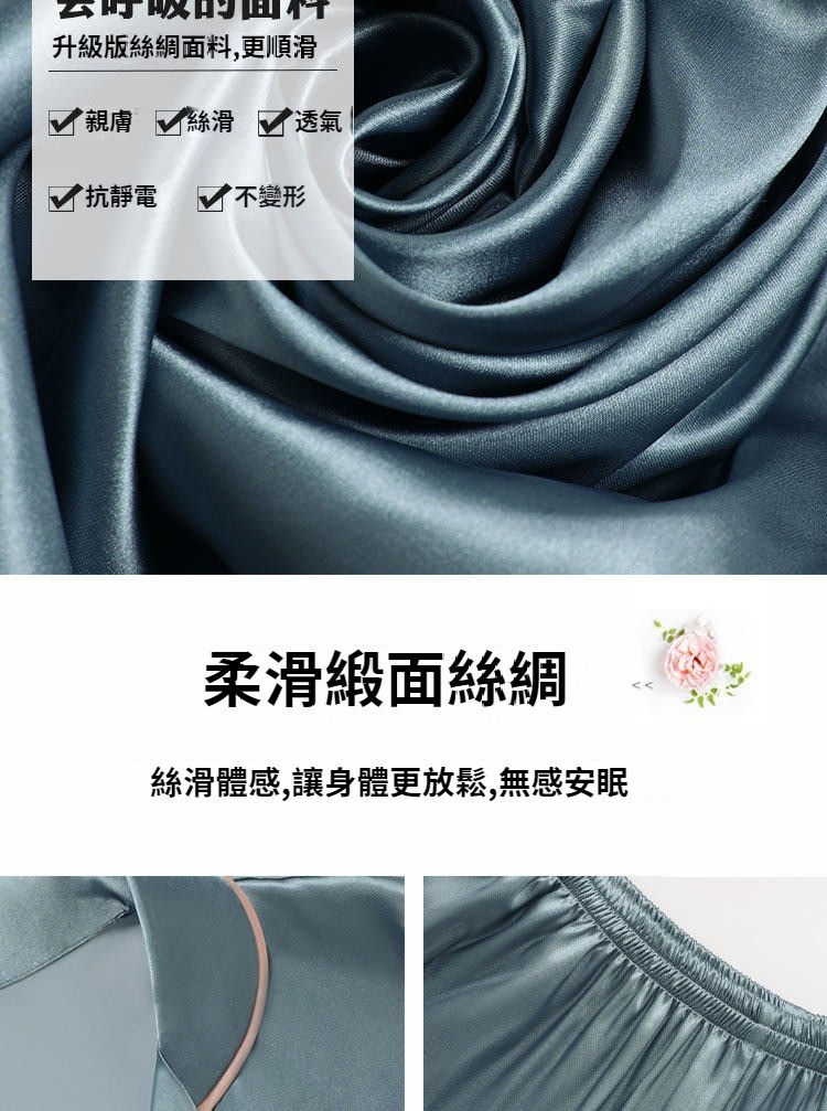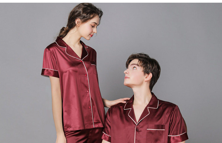 高級感冰絲半袖情侶睡衣,真絲半袖長褲簡約純色高級感春秋夏款套裝 男女