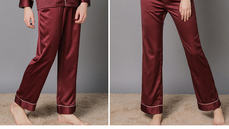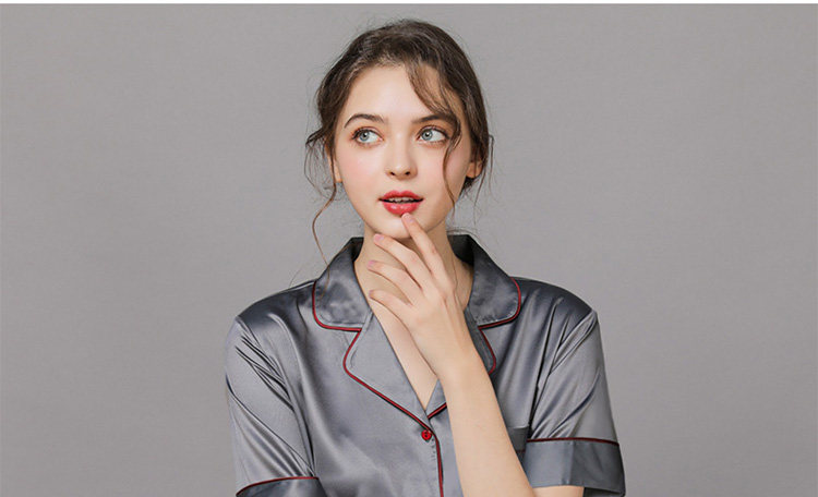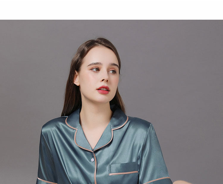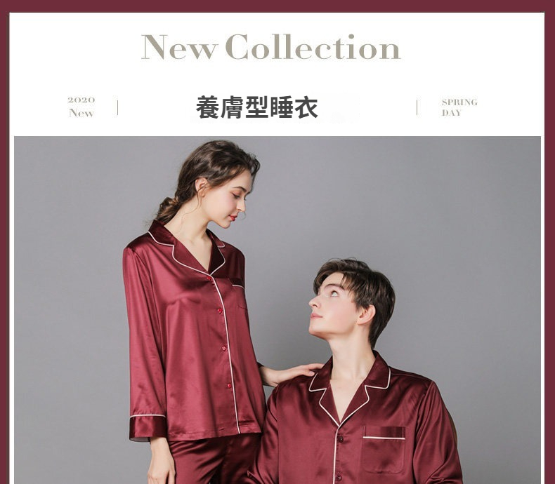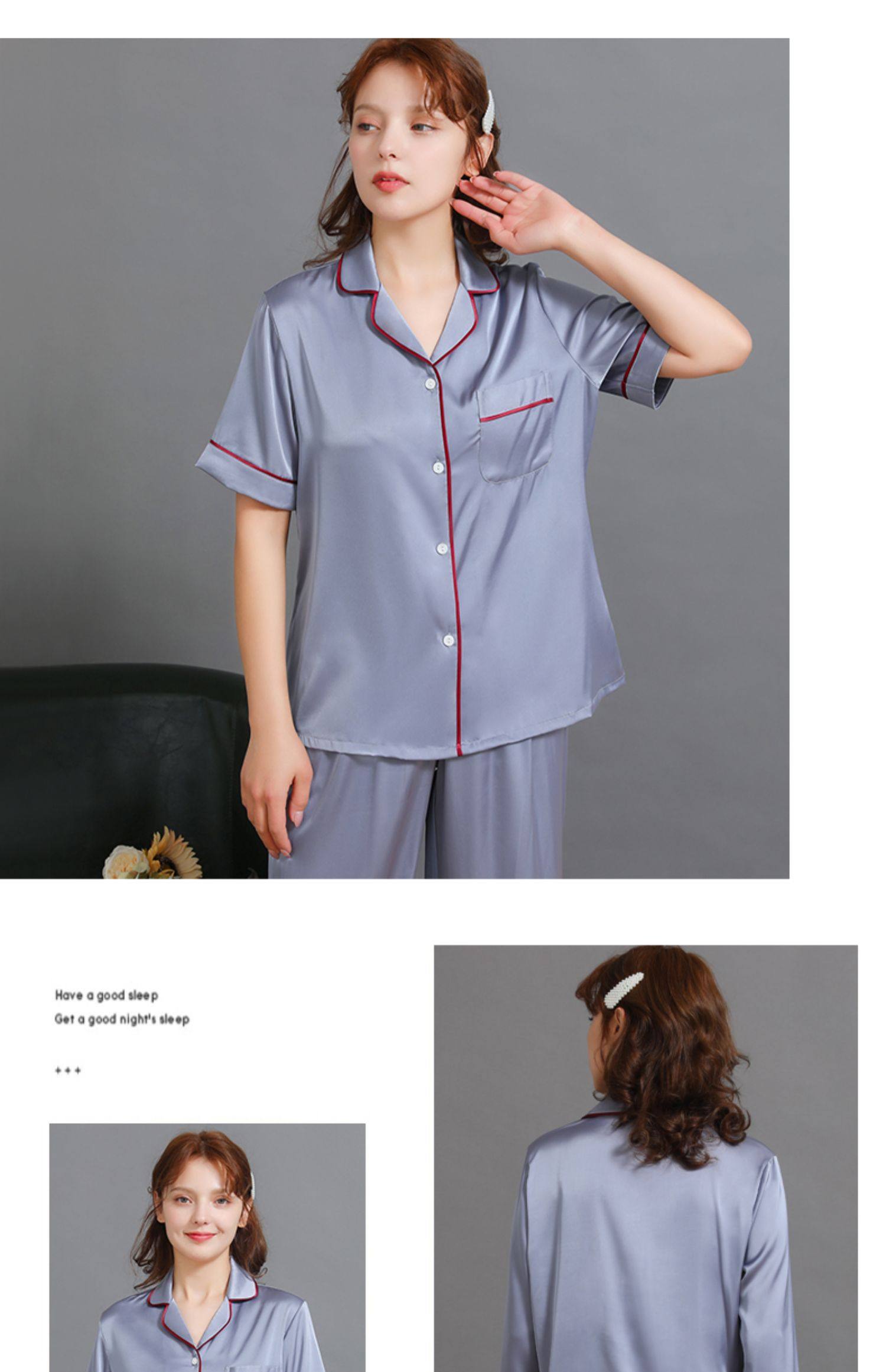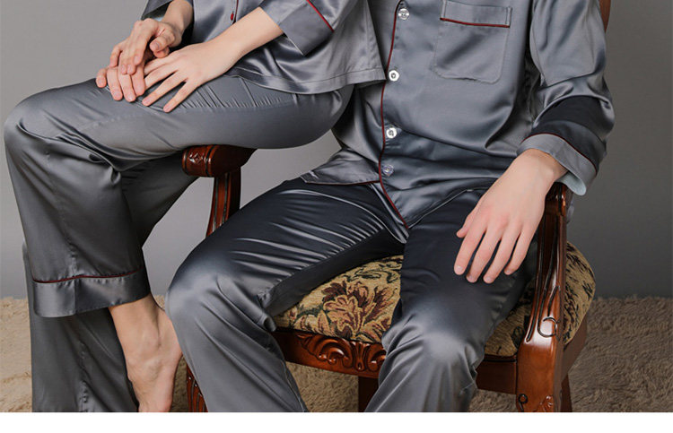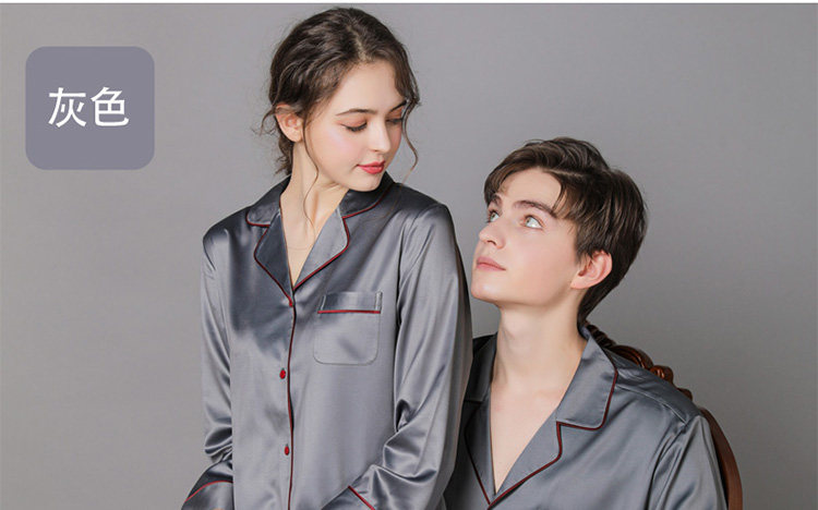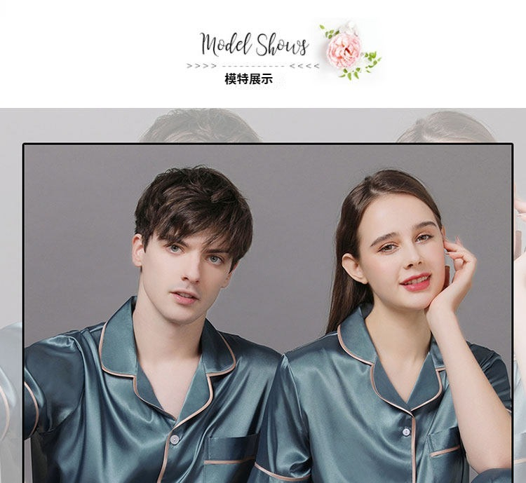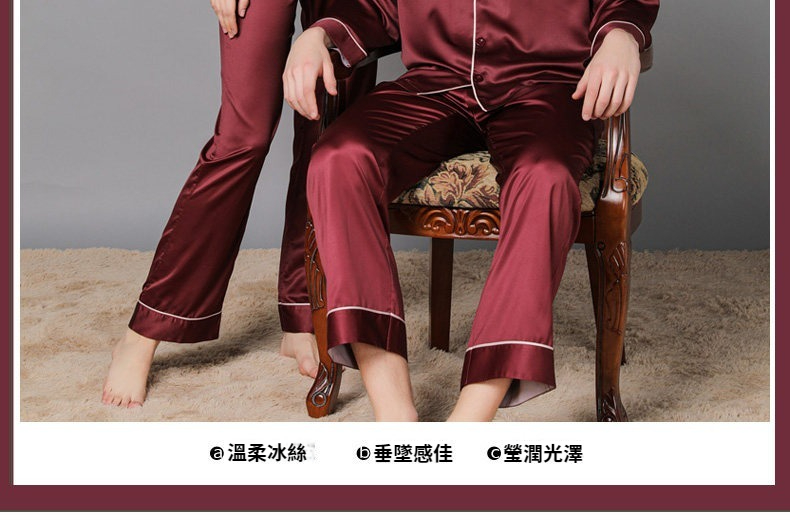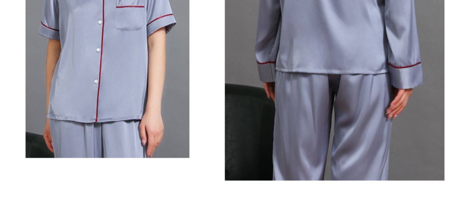 第 2 件 : 情侶睡衣冰絲真絲半袖長褲簡約純色高級感春秋夏款套裝男女
