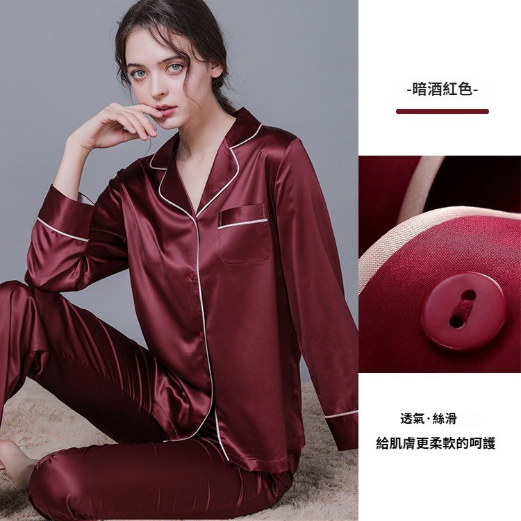 第 1 件 : 情侶睡衣冰絲真絲半袖長褲簡約純色高級感春秋夏款套裝男女
