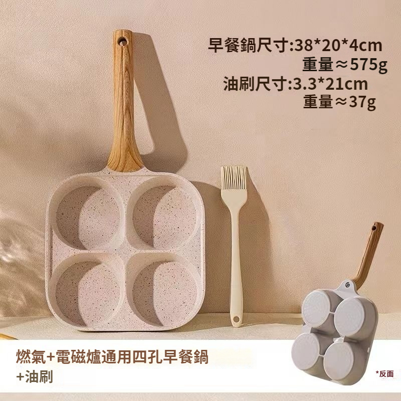 (米色早餐鍋+【防燙加高手柄】通用款+油刷)兩組1499
