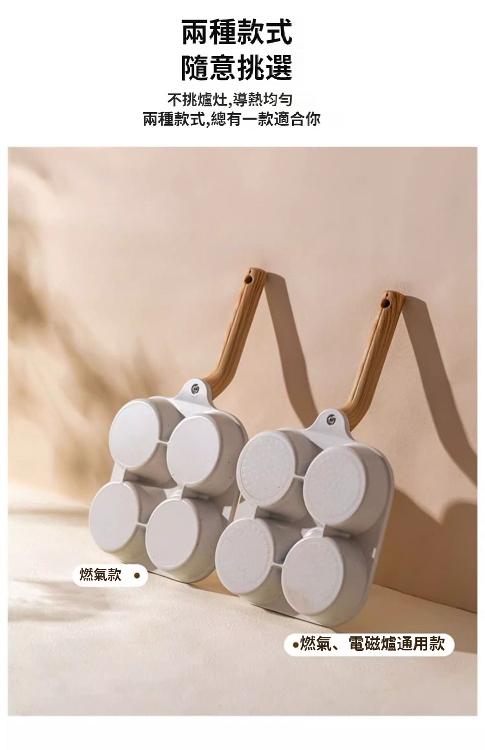 (米色早餐鍋+【防燙加高手柄】燃氣款+油刷)兩組1399