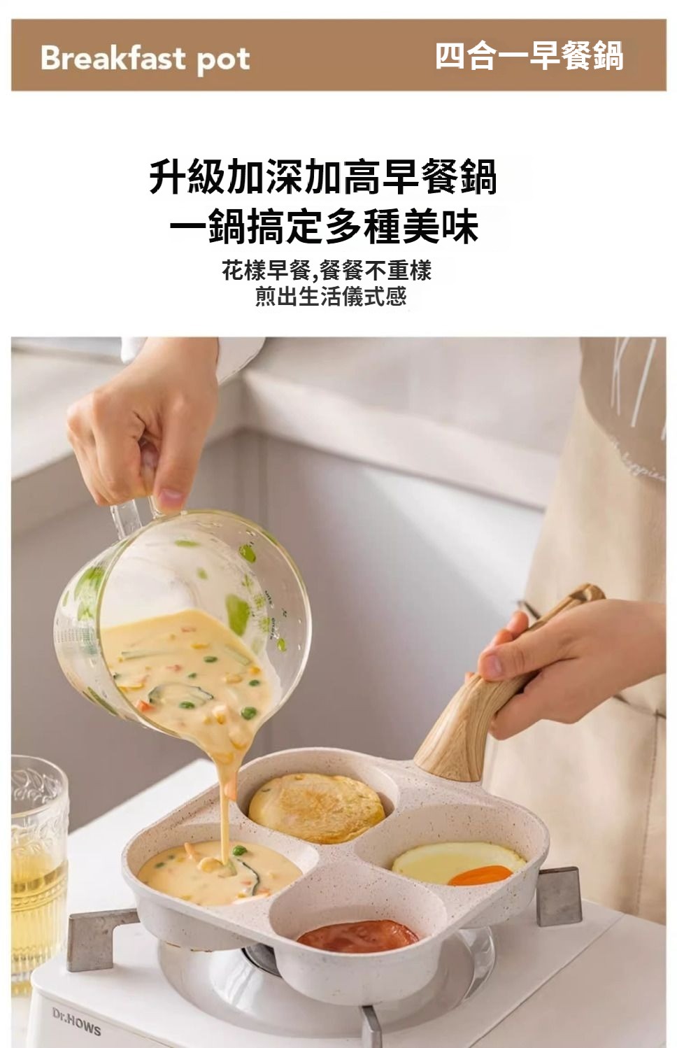 (米色早餐鍋+【防燙加高手柄】燃氣款+油刷) 一組899
