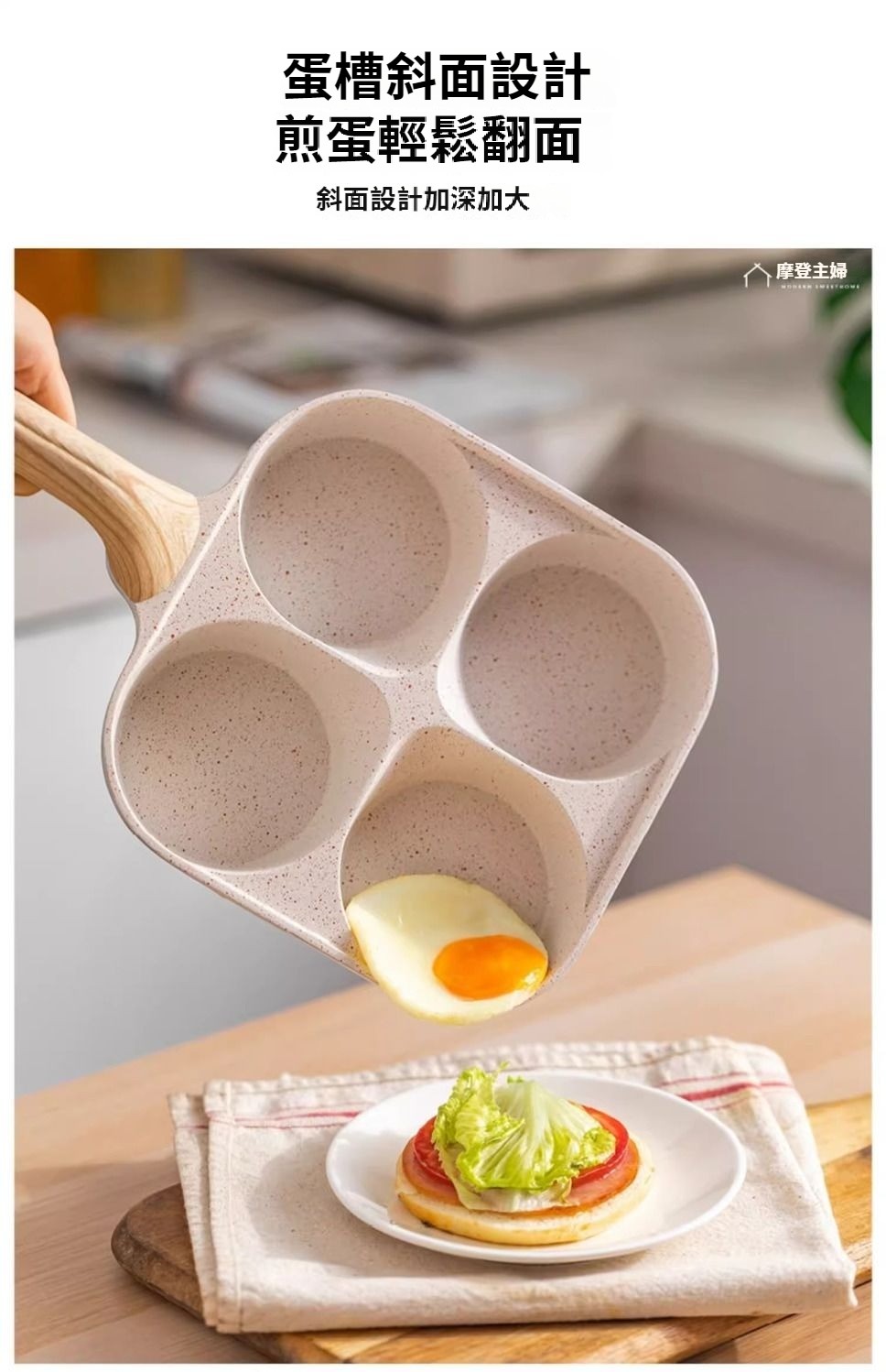 加深麥飯石四孔煎蛋鍋雞蛋漢堡鍋早餐鍋煎蛋神器家用不粘鍋平底鍋