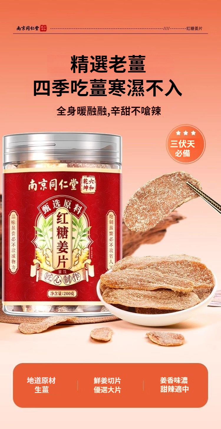 南京同仁堂紅糖姜片200g乾姜片正品驅寒無添加即食罐裝正品