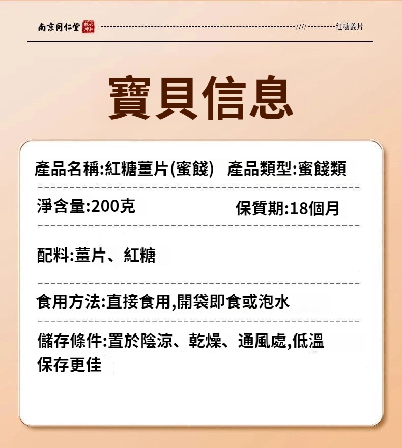 南京同仁堂紅糖姜片200g乾姜片正品驅寒無添加即食罐裝正品 NT$ 999