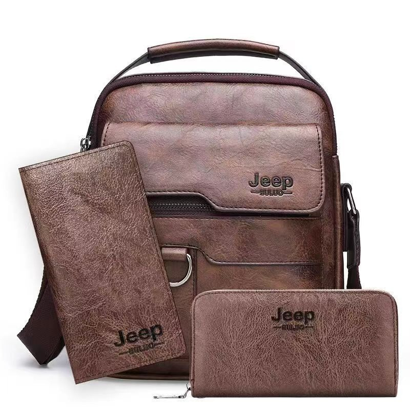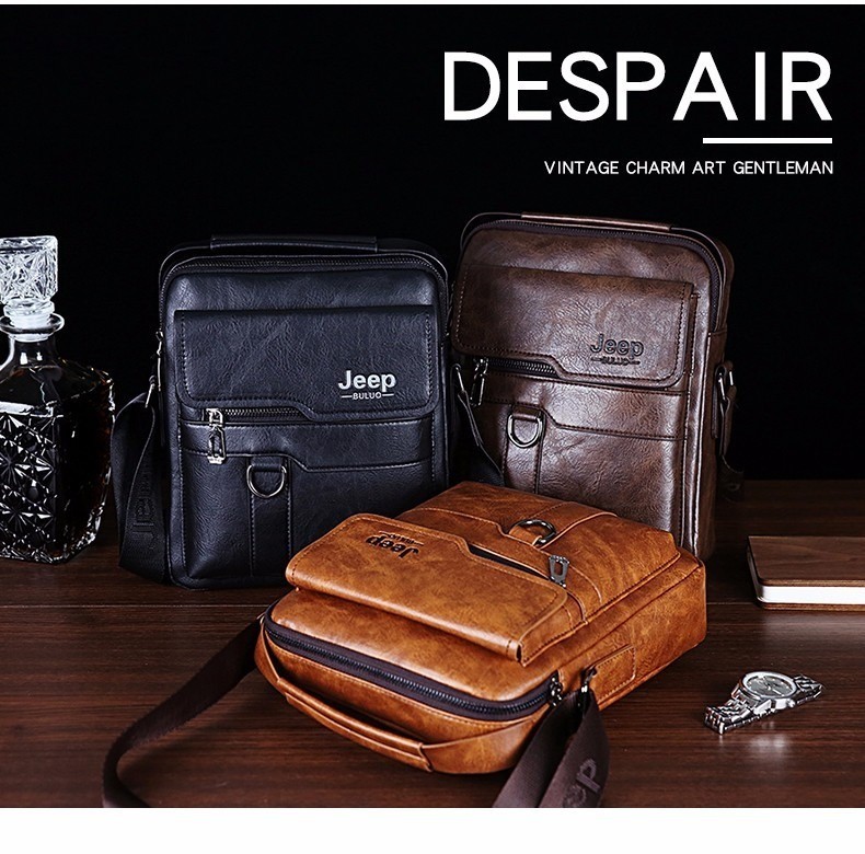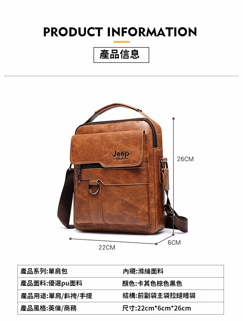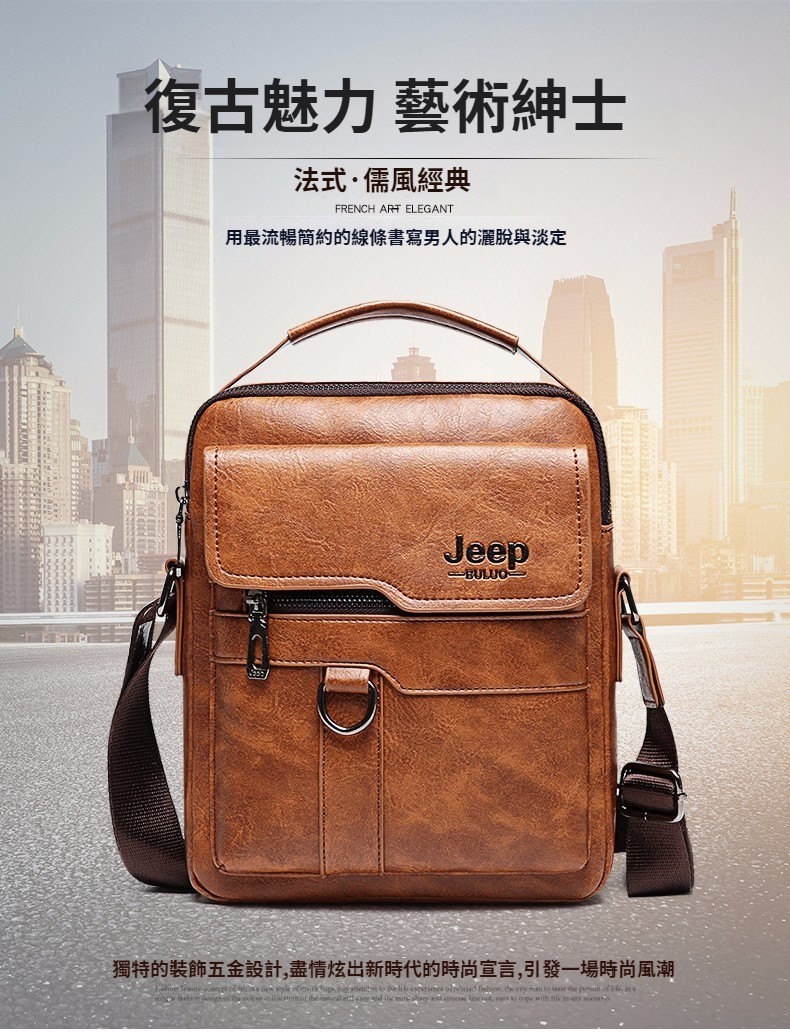 第 1 件 : PU男士JEEP商務包復古斜背包大容量男包肩背包休閒手提公事包