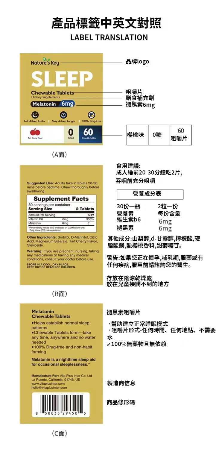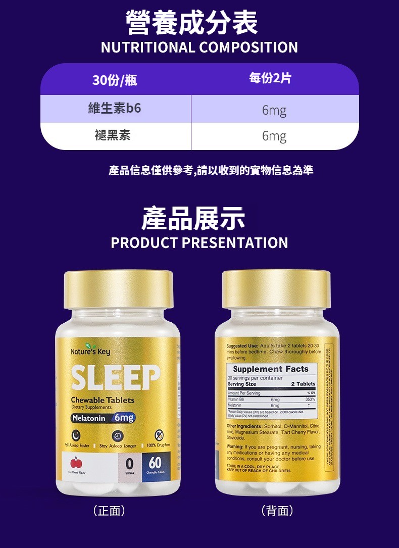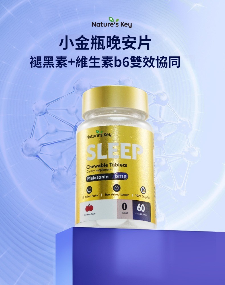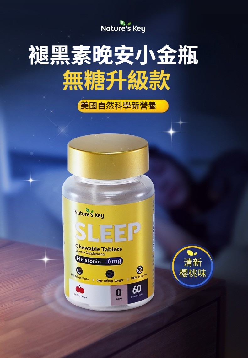 Nature's Key褪黑素小金瓶晚安片無糖型成人睡眠倒時差咀嚼片60片