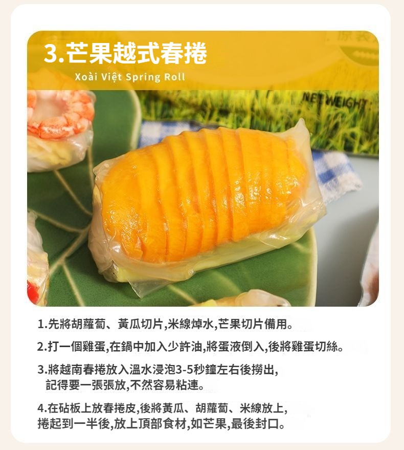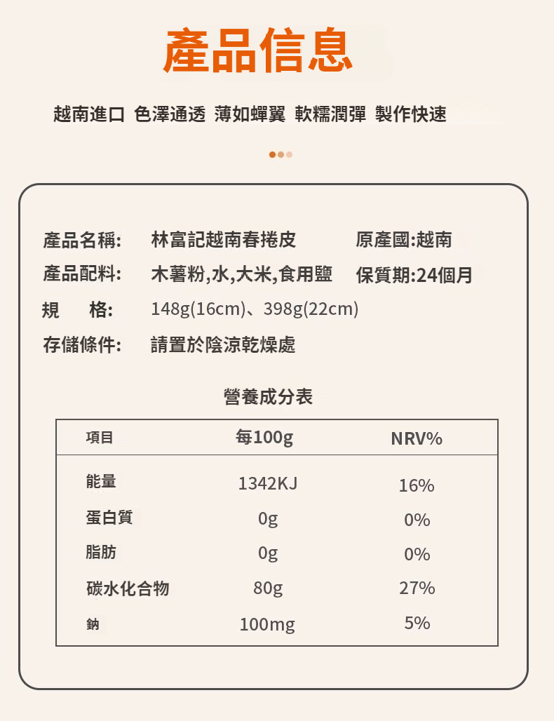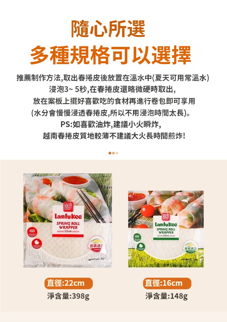 越南進口春捲皮透明米紙蔬菜海鮮家用水晶春餅原料即食手工可油炸 NT$ 850