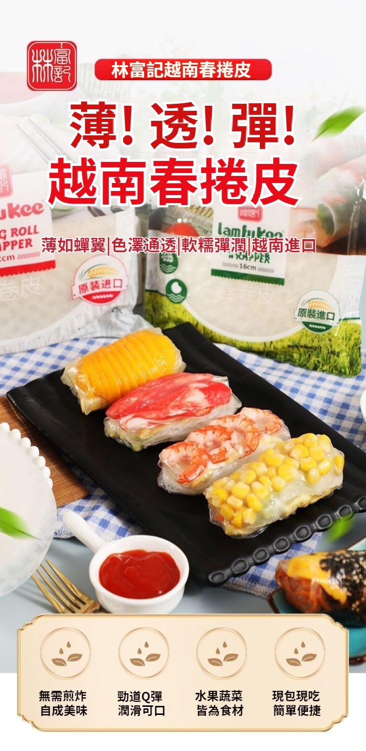 越南進口春捲皮透明米紙蔬菜海鮮家用水晶春餅原料即食手工可油炸