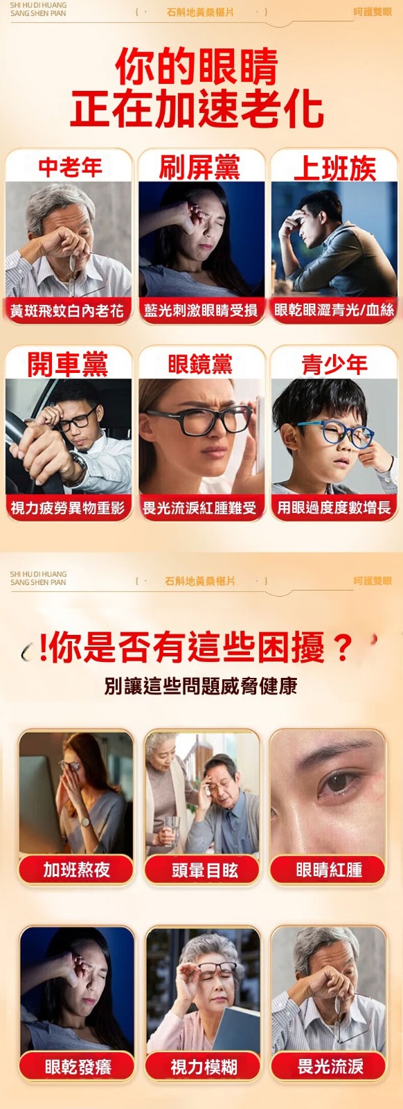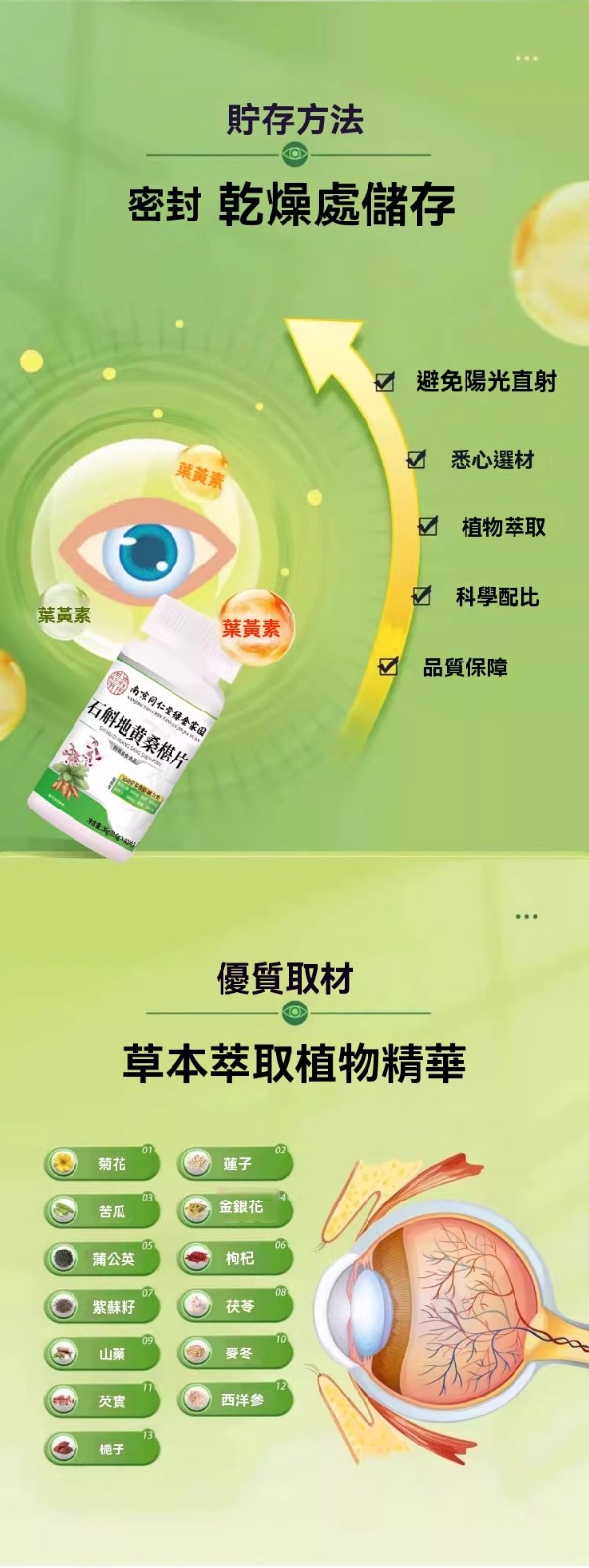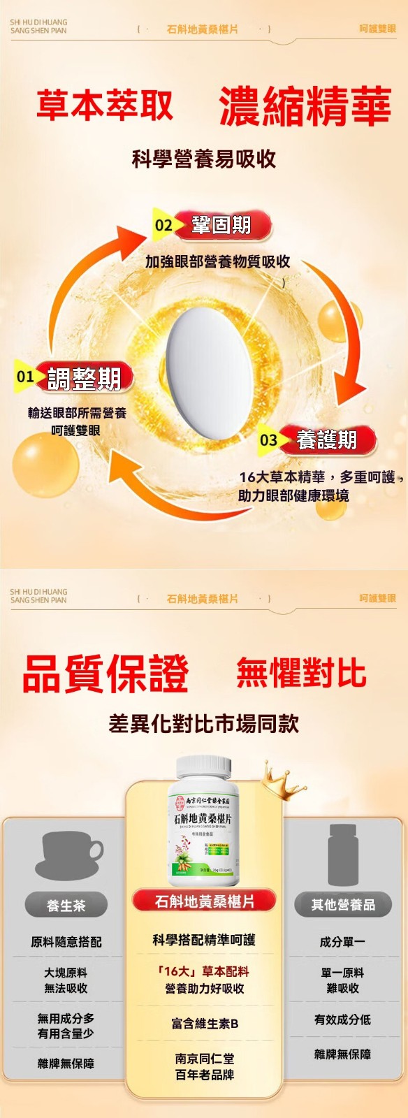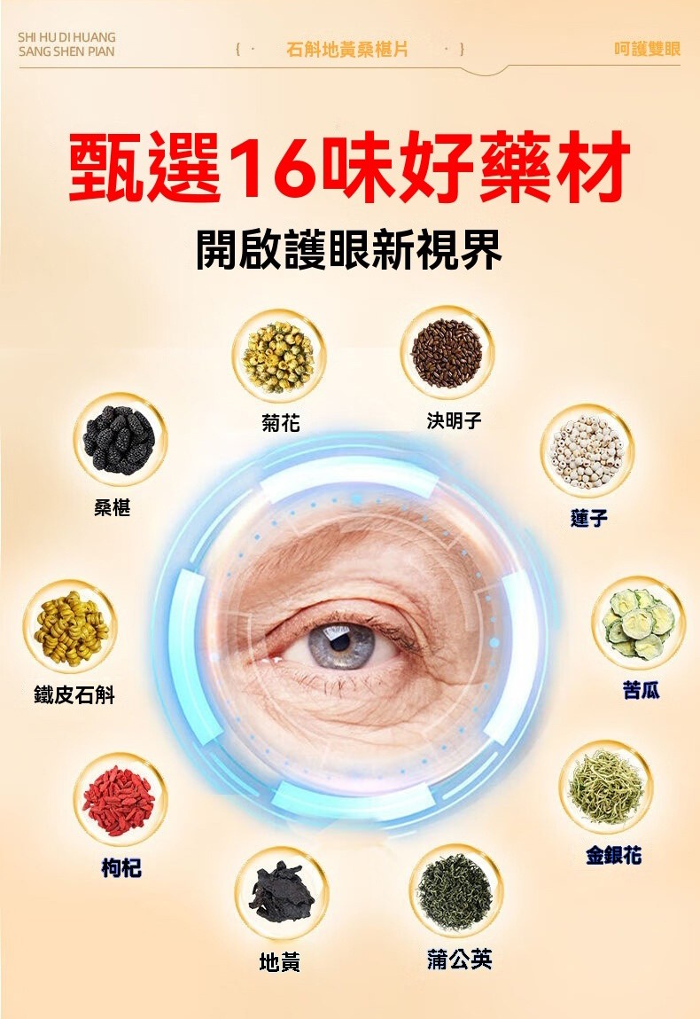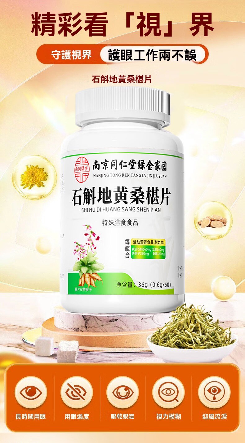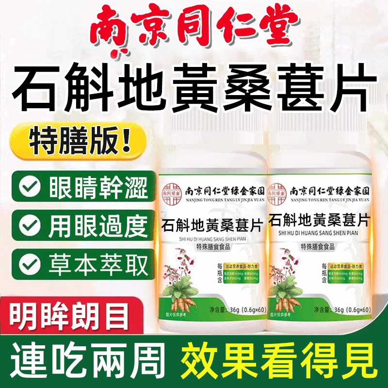 南京同仁堂特膳護眼片【石斛地黃桑葚片】解決眼乾澀、用眼過度超給力、石斛+地黃+桑葚!草本配方、眼睛幹澀、眼睛黃斑老化、視物模糊,只需每天兩次,一次兩片輕鬆調理特膳認證更放心~