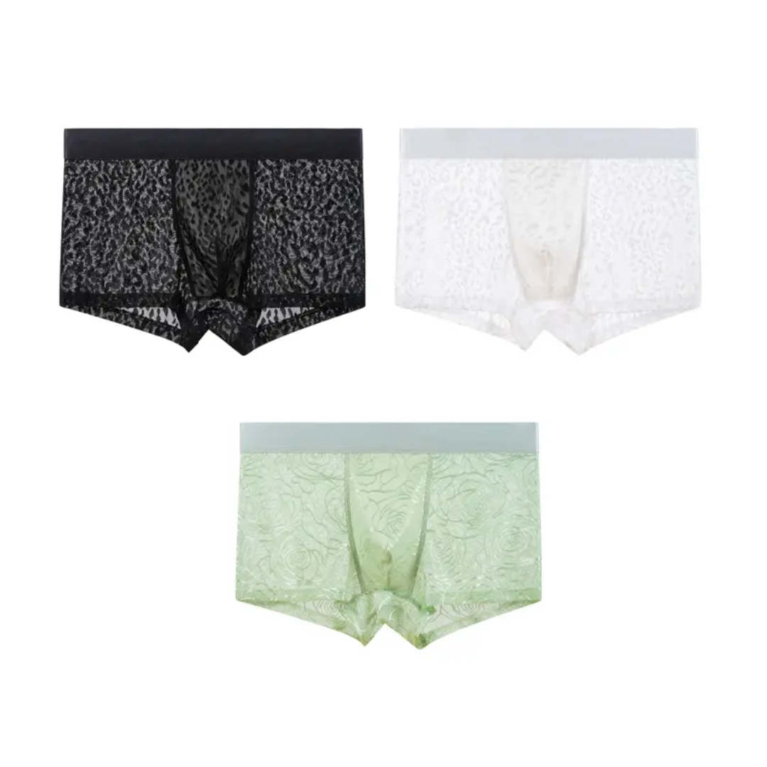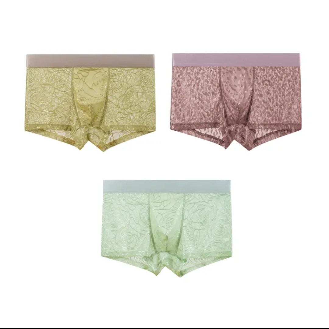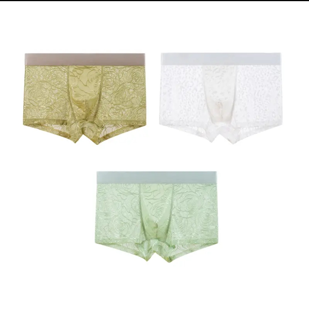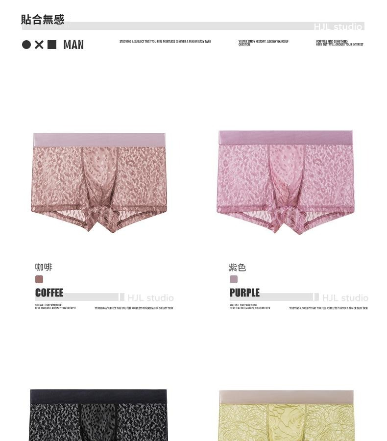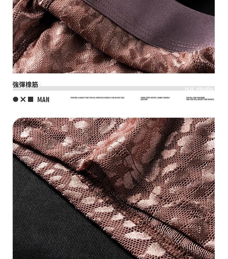 第 1 件 : 新款男士冰絲內褲夏季薄款蕾絲透氣平角褲性感網紗舒適男士四角褲