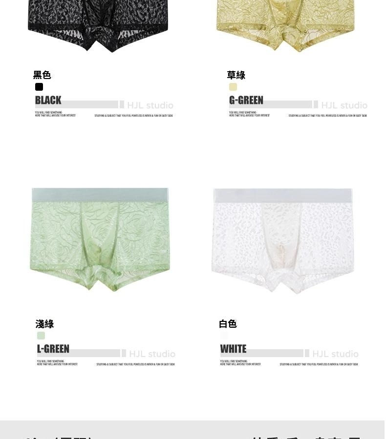 新款男士冰絲內褲夏季薄款蕾絲透氣平角褲性感網紗舒適男士四角褲