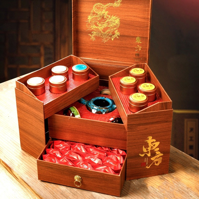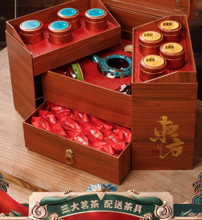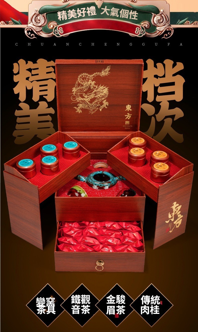 過年中秋送禮東方茶葉禮盒裝,金駿眉鐵觀音肉桂茶葉組合裝送茶具