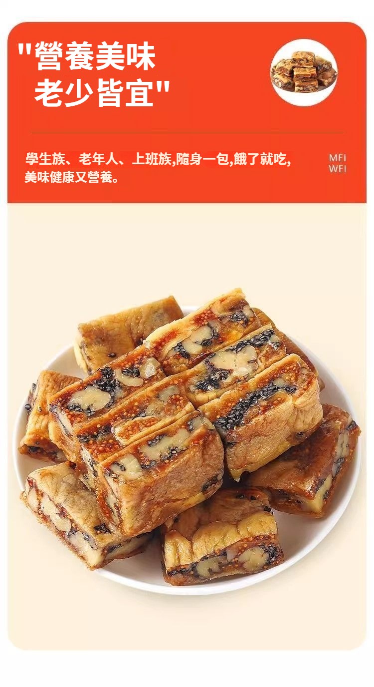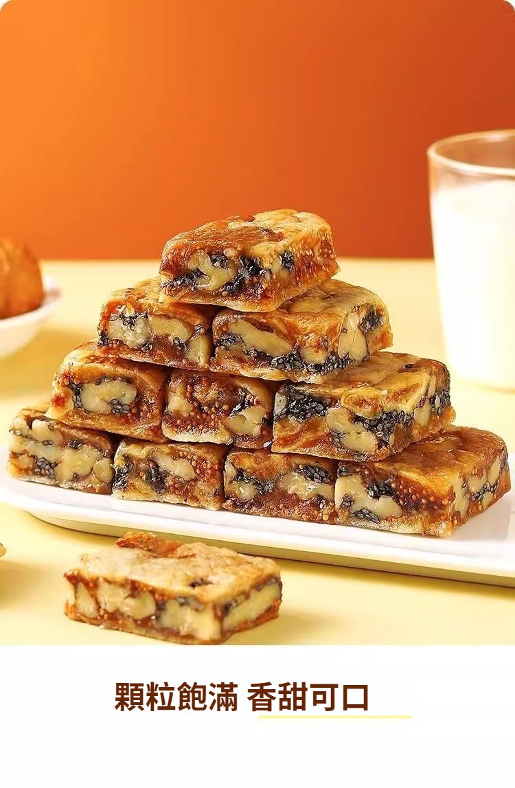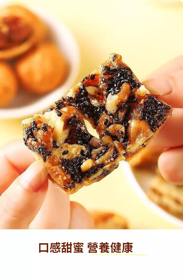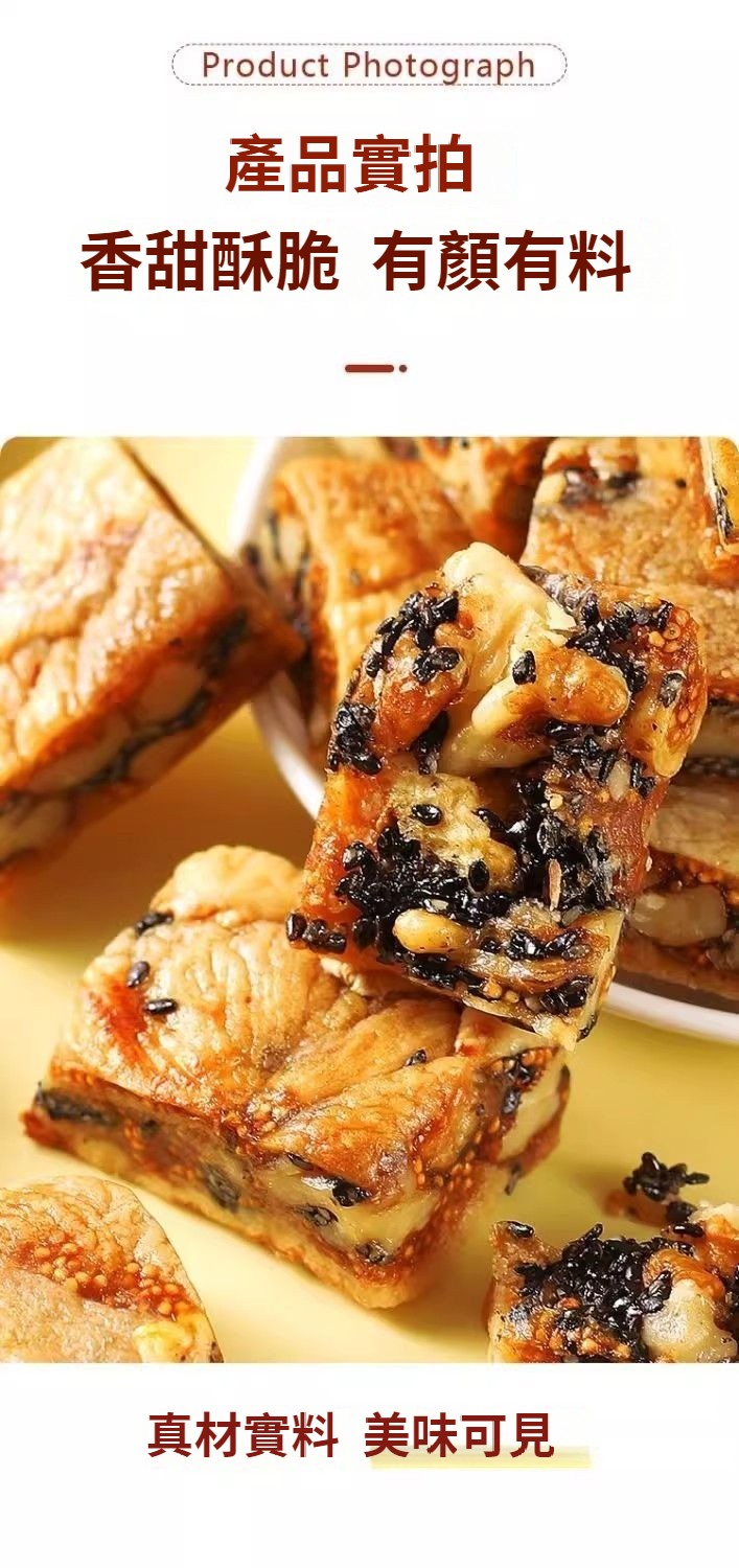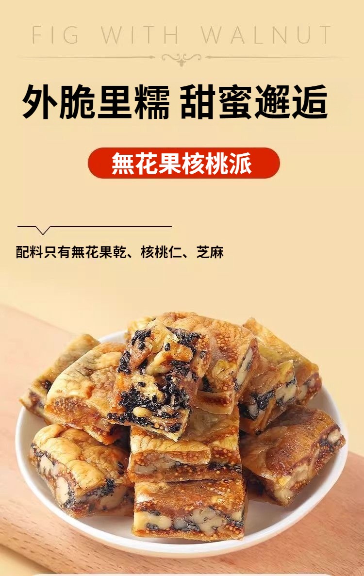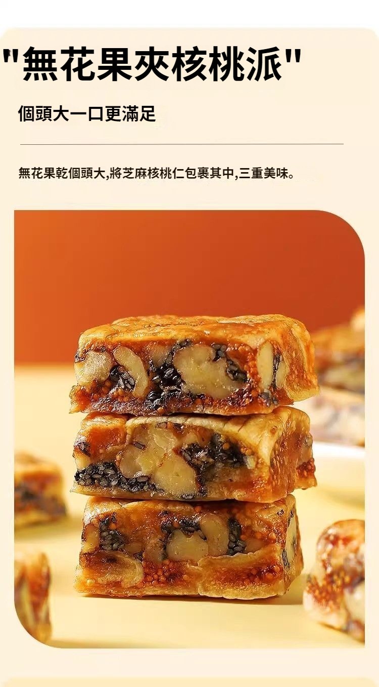 無花果黑芝麻核桃派,純天然食材,三蒸三曬,外酥裏糯,配料只有無花果乾+核桃仁+芝麻,乾淨衛生,營養美味,老少皆宜!