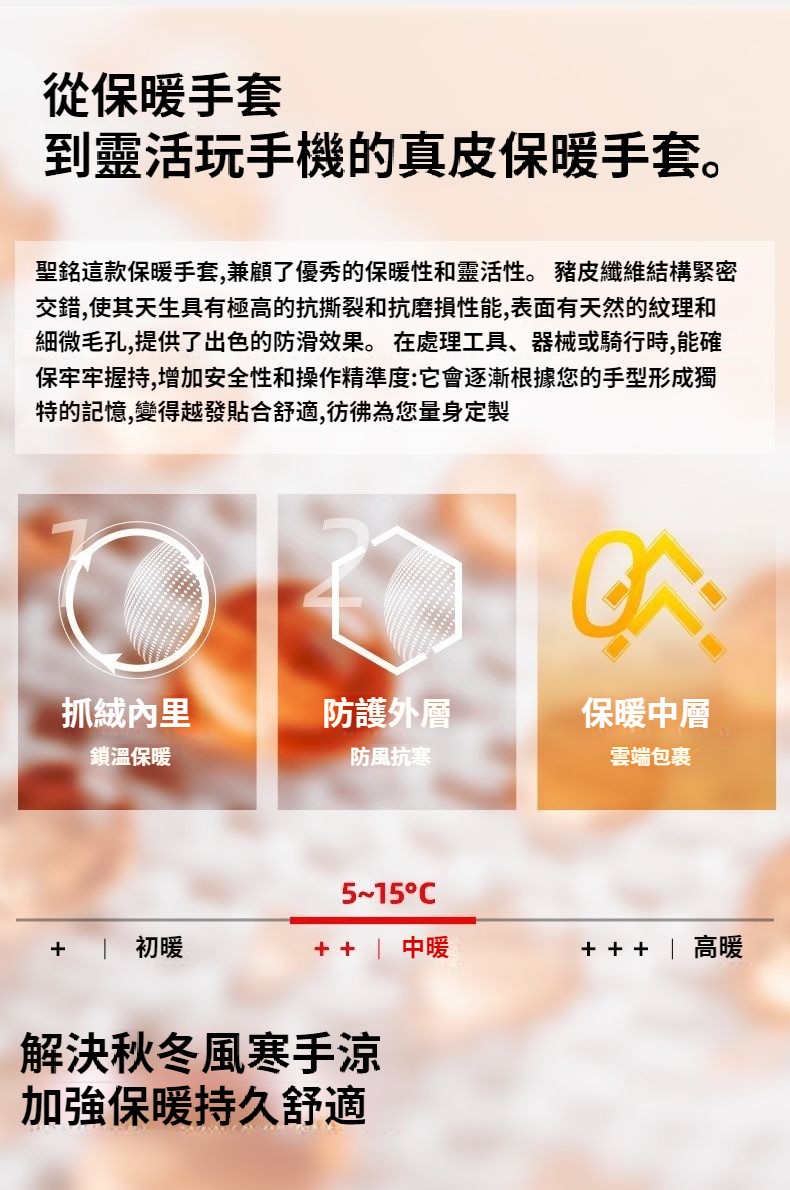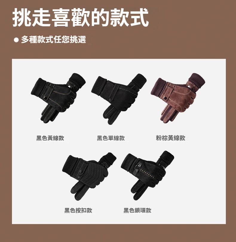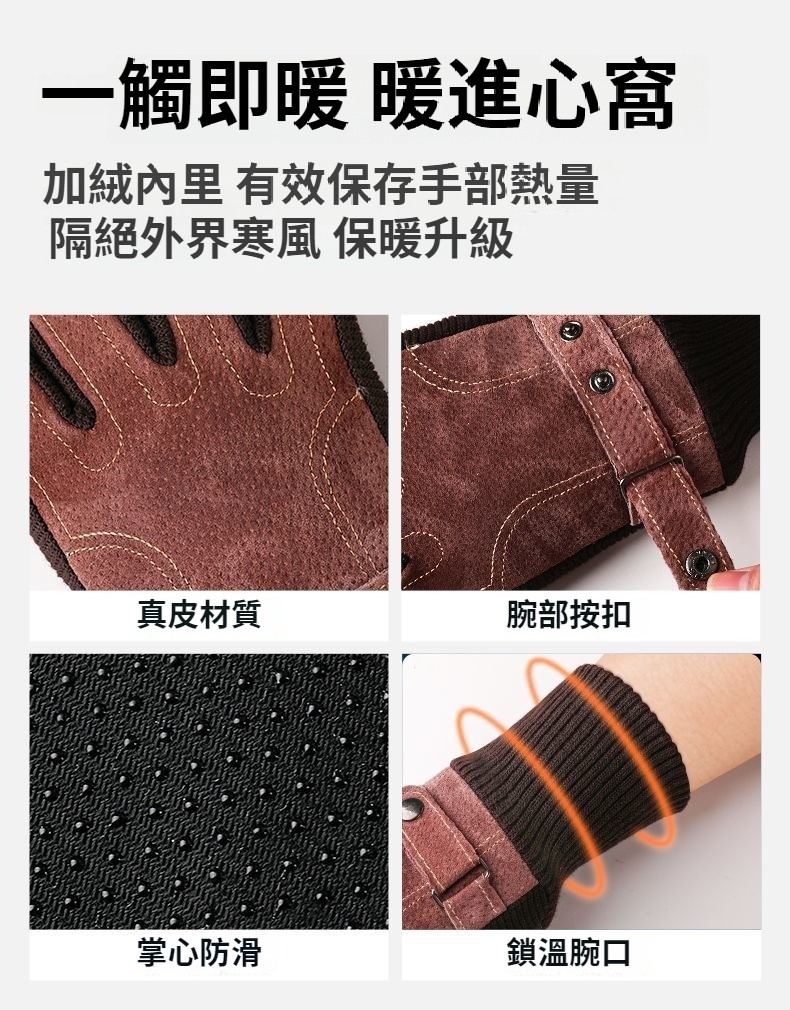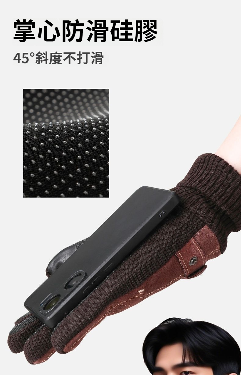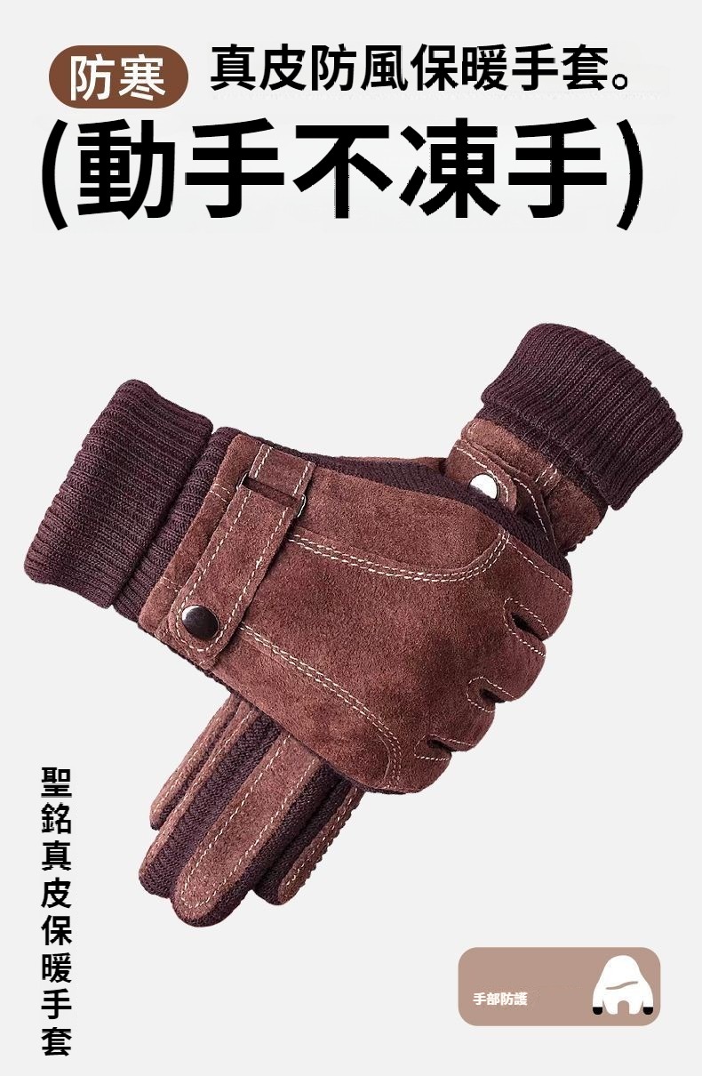 第 2 件 : 真皮手套男秋冬戶外騎車摩托車防風防滑加絨加厚保暖觸屏