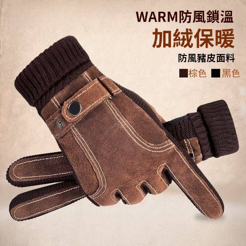 第 1 件 : 真皮手套男秋冬戶外騎車摩托車防風防滑加絨加厚保暖觸屏