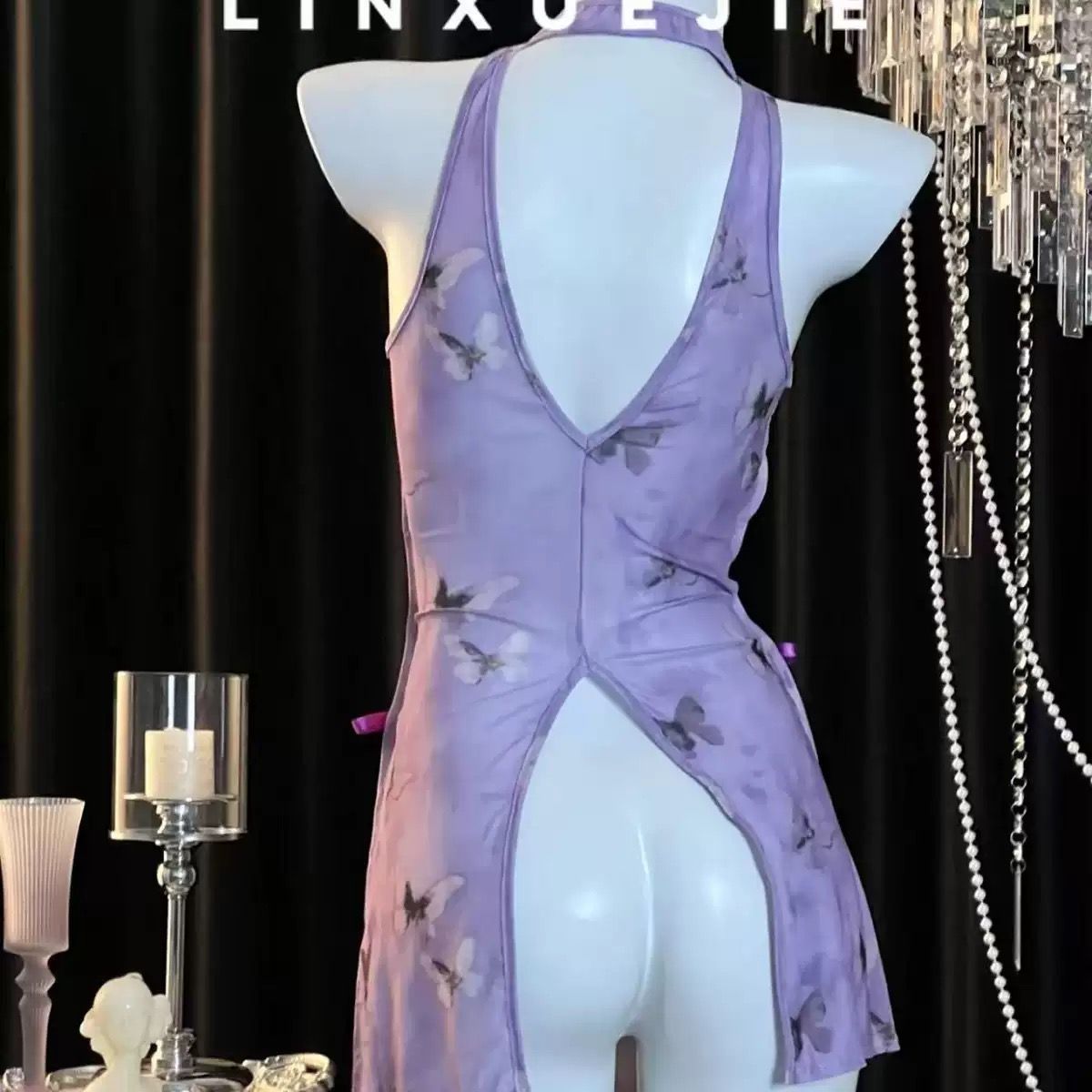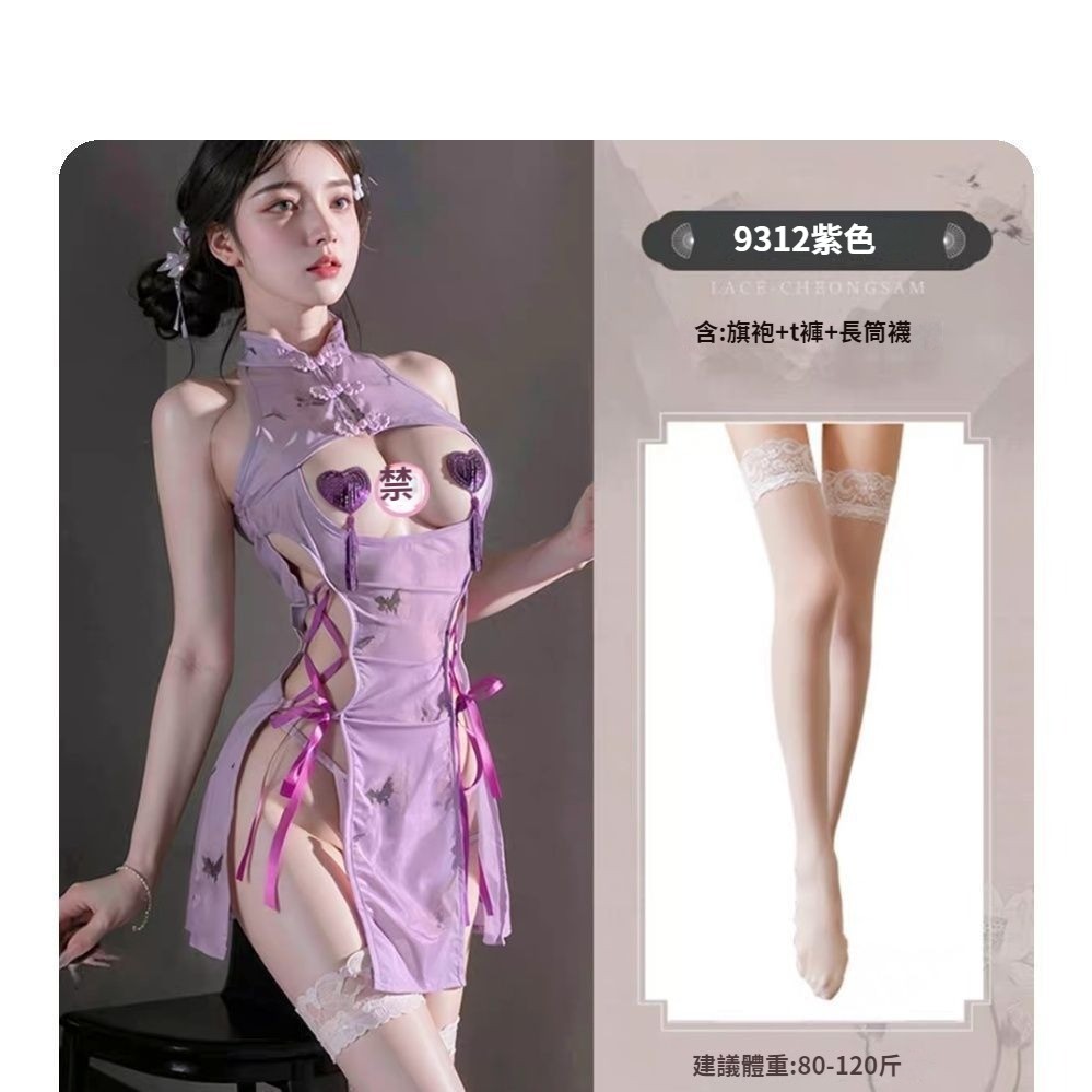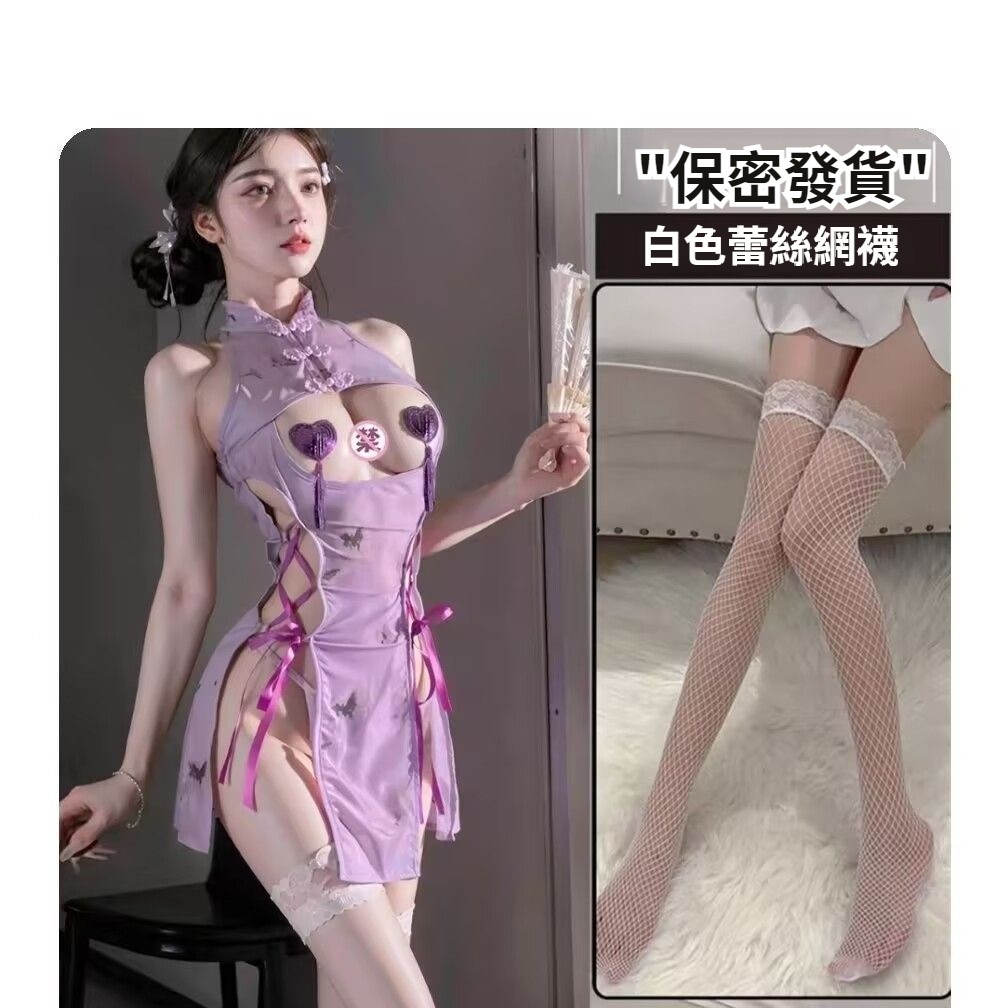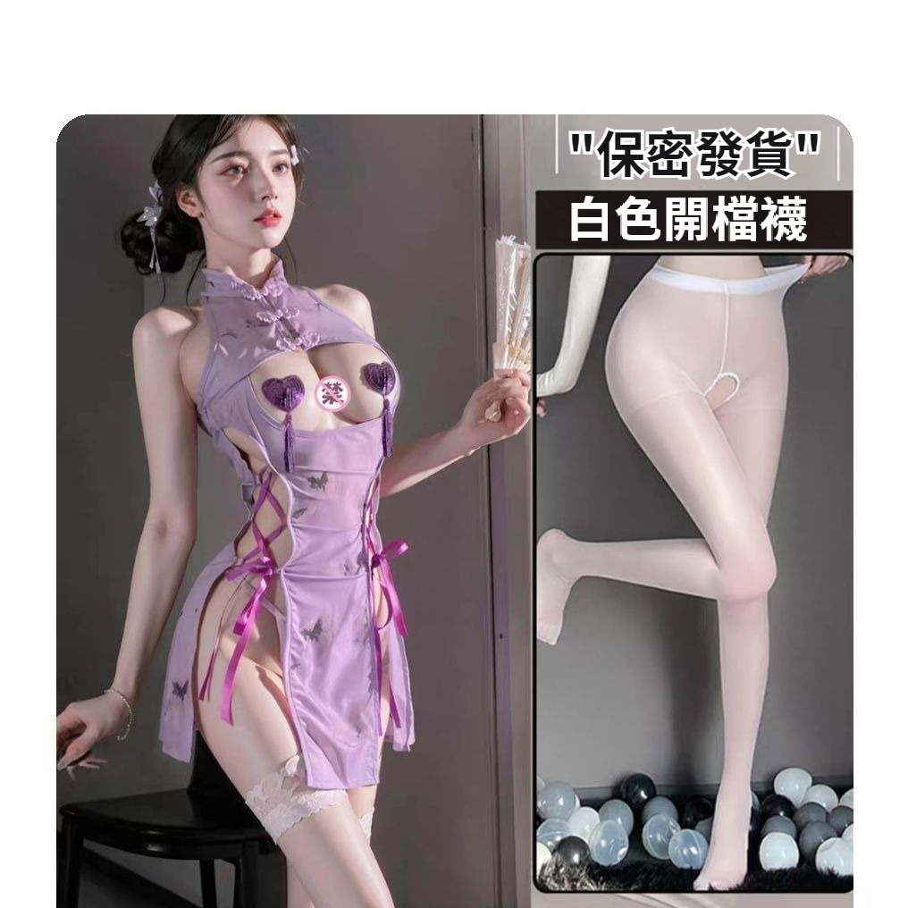 第 1 件 : 爆款情趣內衣性感紫色旗袍露乳小胸激情純欲禁欲床上免脫戰袍套裝