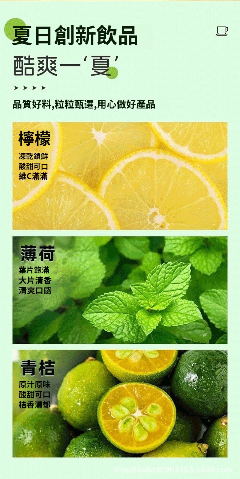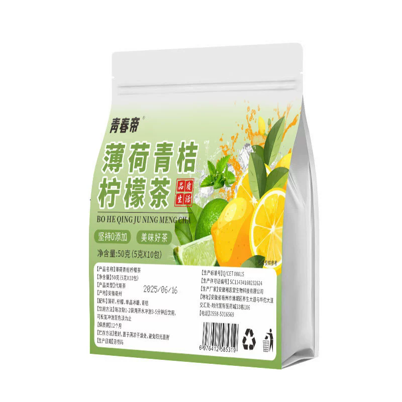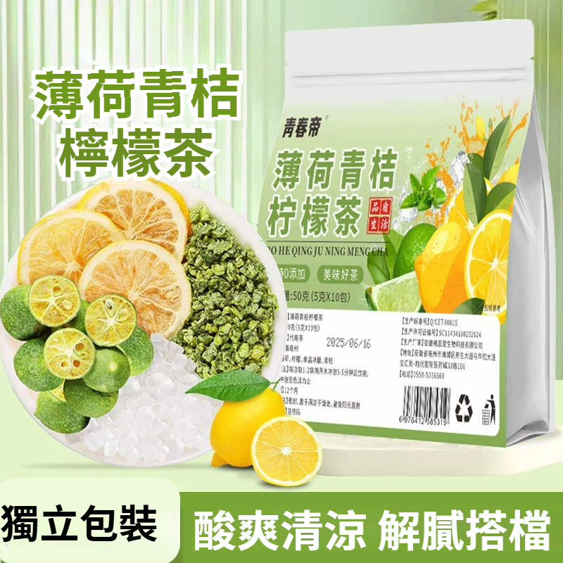 【薄荷青桔檸檬茶】薄荷+青桔+檸檬三重奏,真實薄荷葉鮮果酸甜,冷熱皆宜,袋裝隨享夏日清涼。
