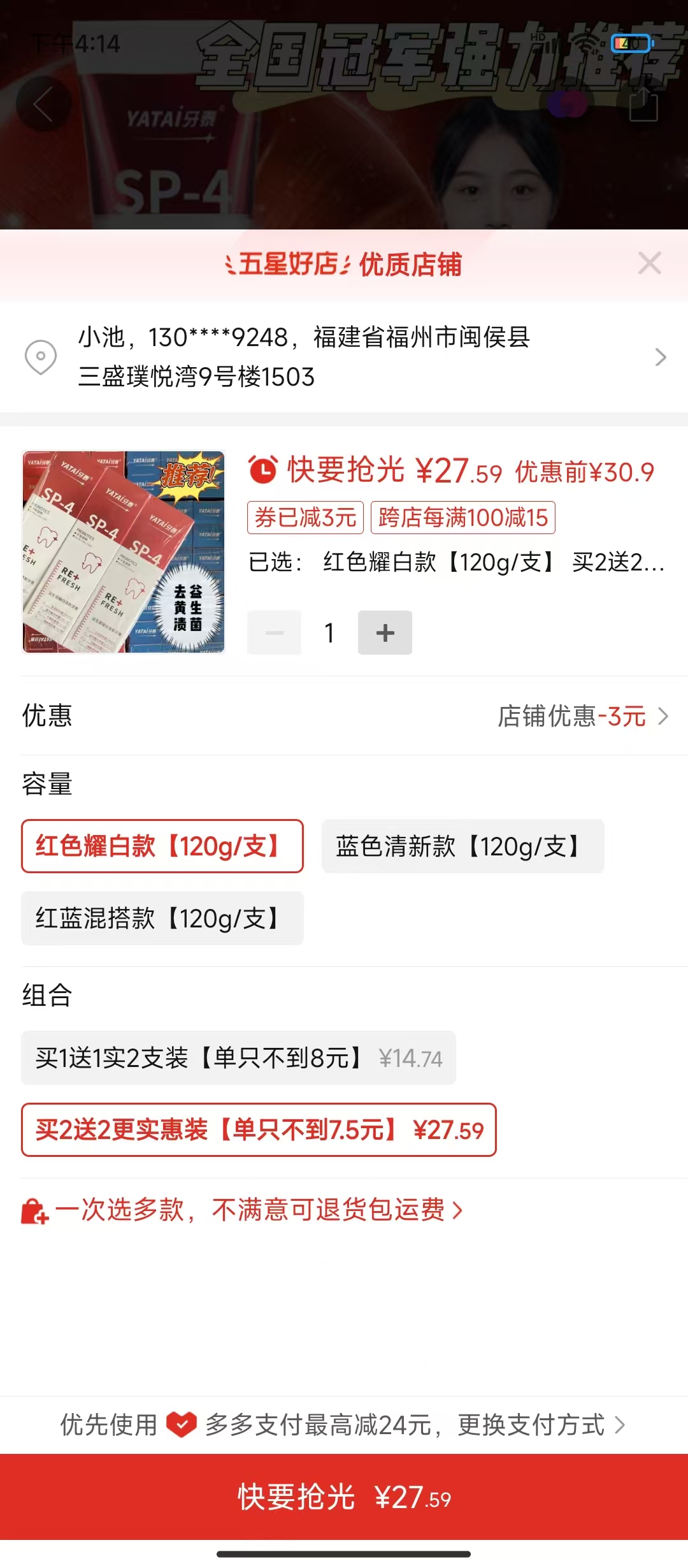 李** 搶購成功 27分鐘前