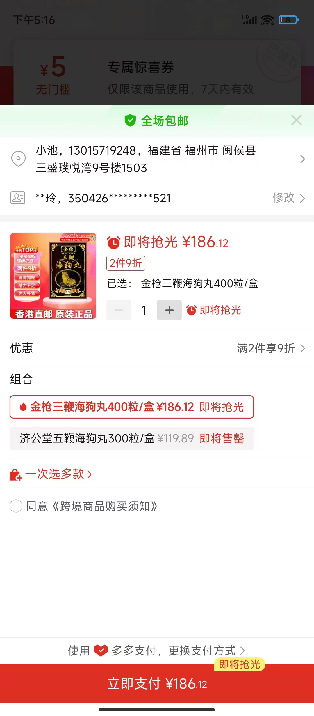 張** 搶購成功 5分鐘前