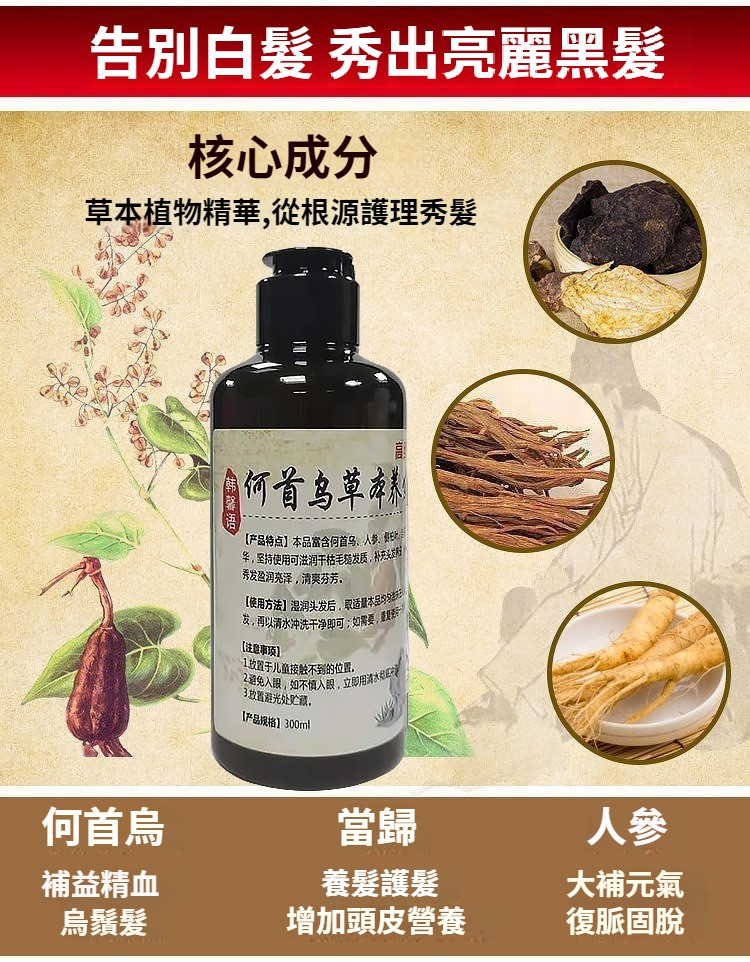 何首烏草本植物洗髮精白髮轉黑無矽油去屑止癢控油洗髮膏