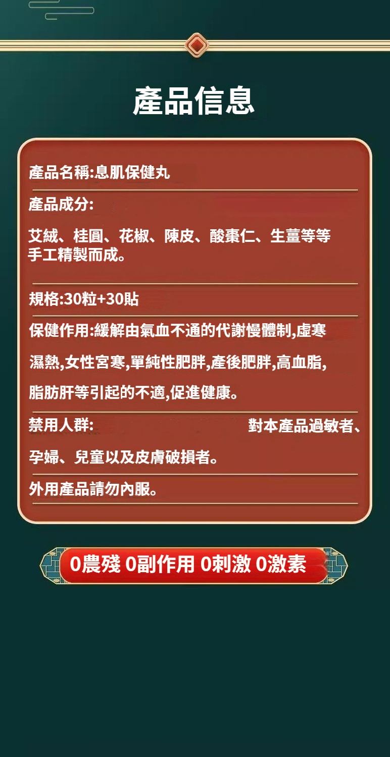 【遵循古方,據記载,太醫用28餘種名貴藥材製成】濕氣重?肚子大?香港息肌丸,每日一貼,去濕除寒!貼出完美身材! NT$ 799