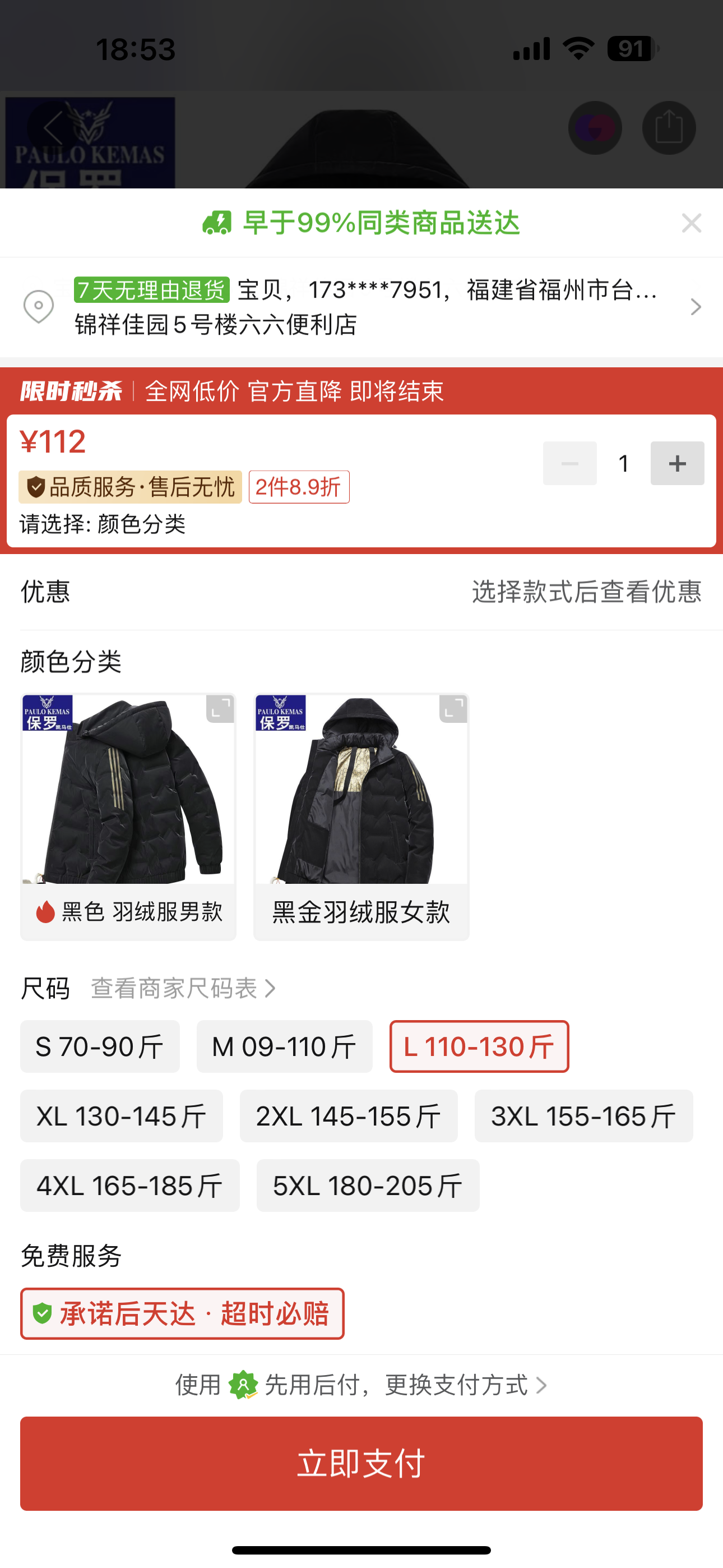 黑色帶帽羽絨服L尺碼1件https://mobile.yangkeduo.com/goods1.html?ps=NIwthupIPS