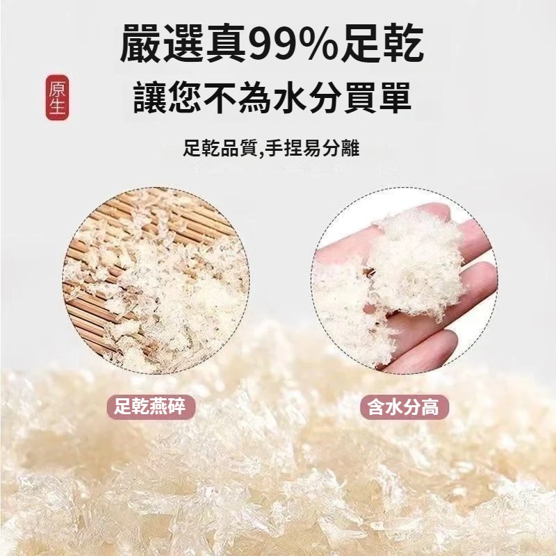 馬來西亞燕窩碎,1克≈5杯牛奶,原生原盞燕碎,免挑毛,飽滿易泡發,燕絲飽滿,Q彈爽滑,營養價值高,美容養顔,孕婦老人推薦! NT$ 799
