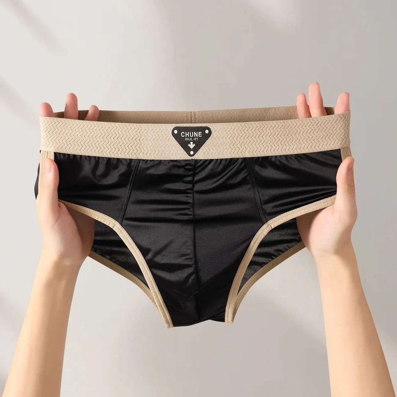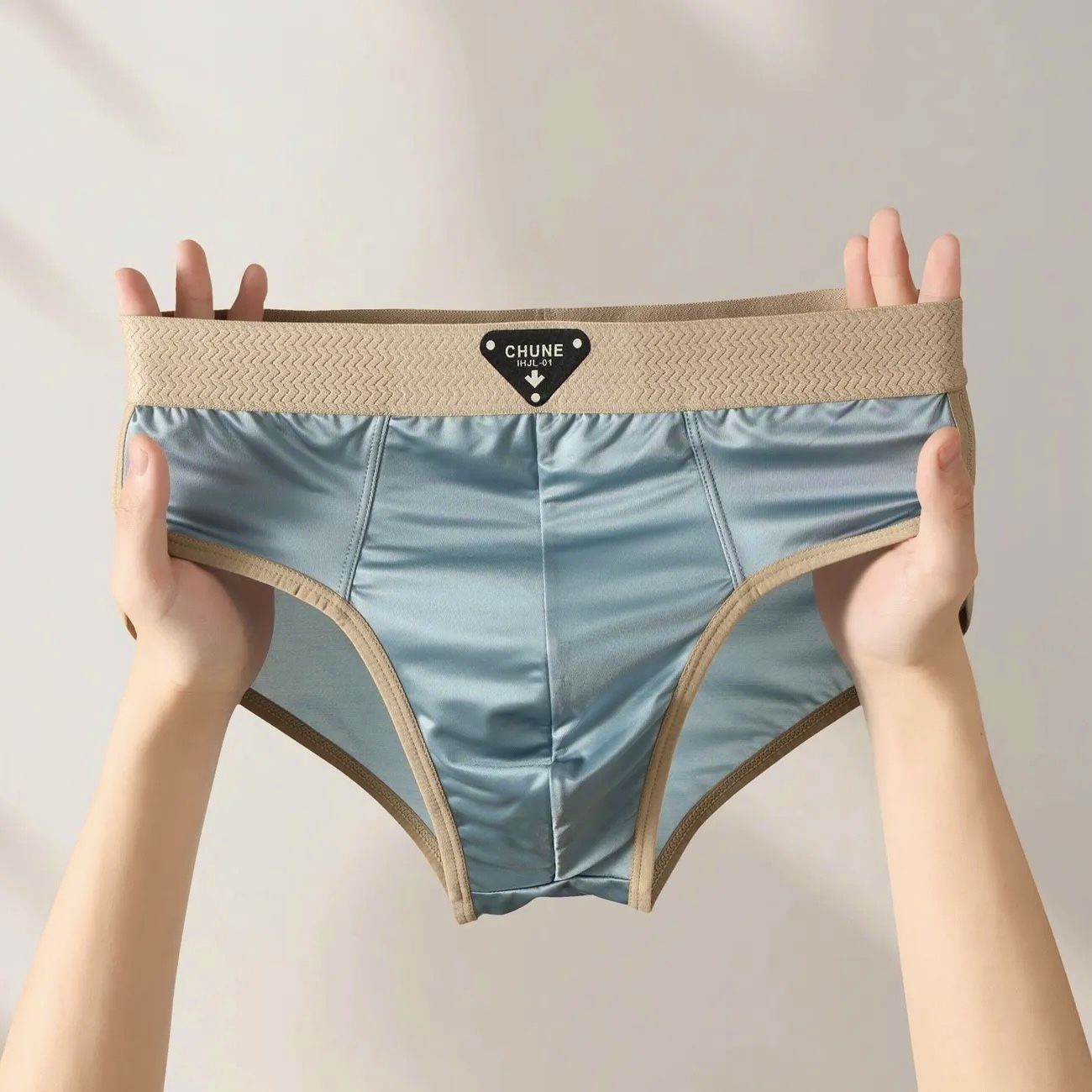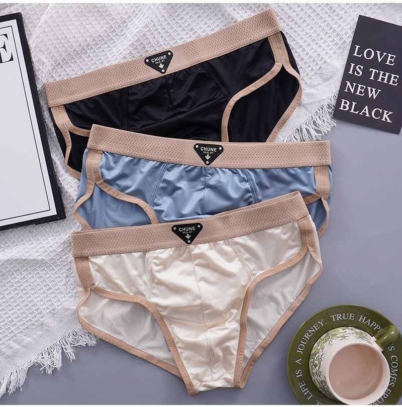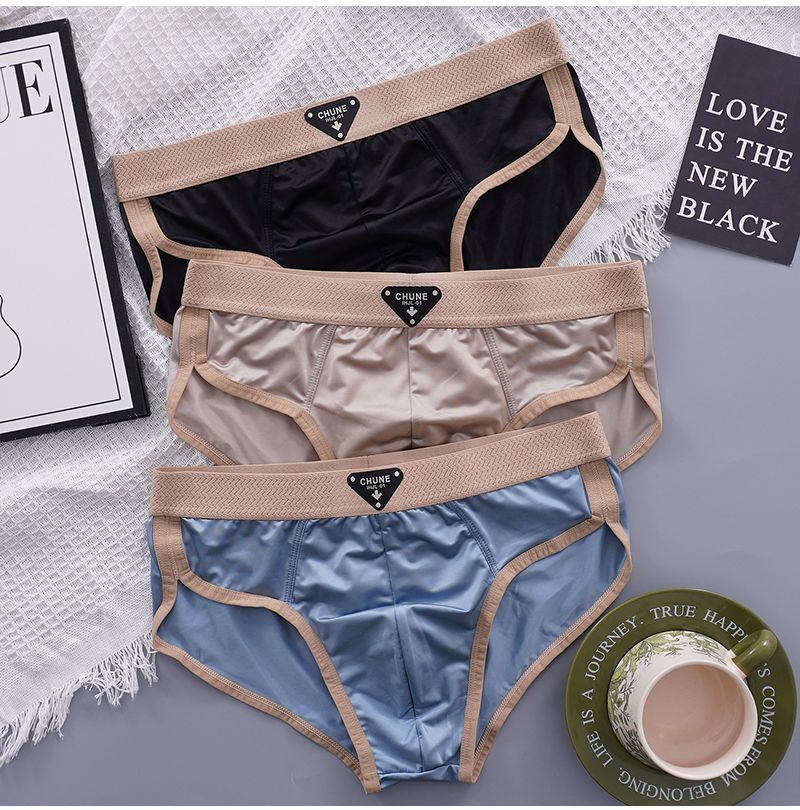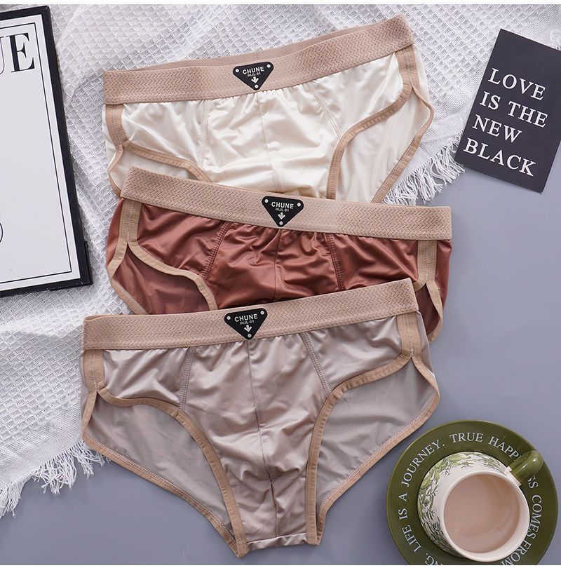第 1 件 : 內褲男士青年三角透氣男生三角褲衩短褲男款冰絲夏季輕奢緞面褲頭