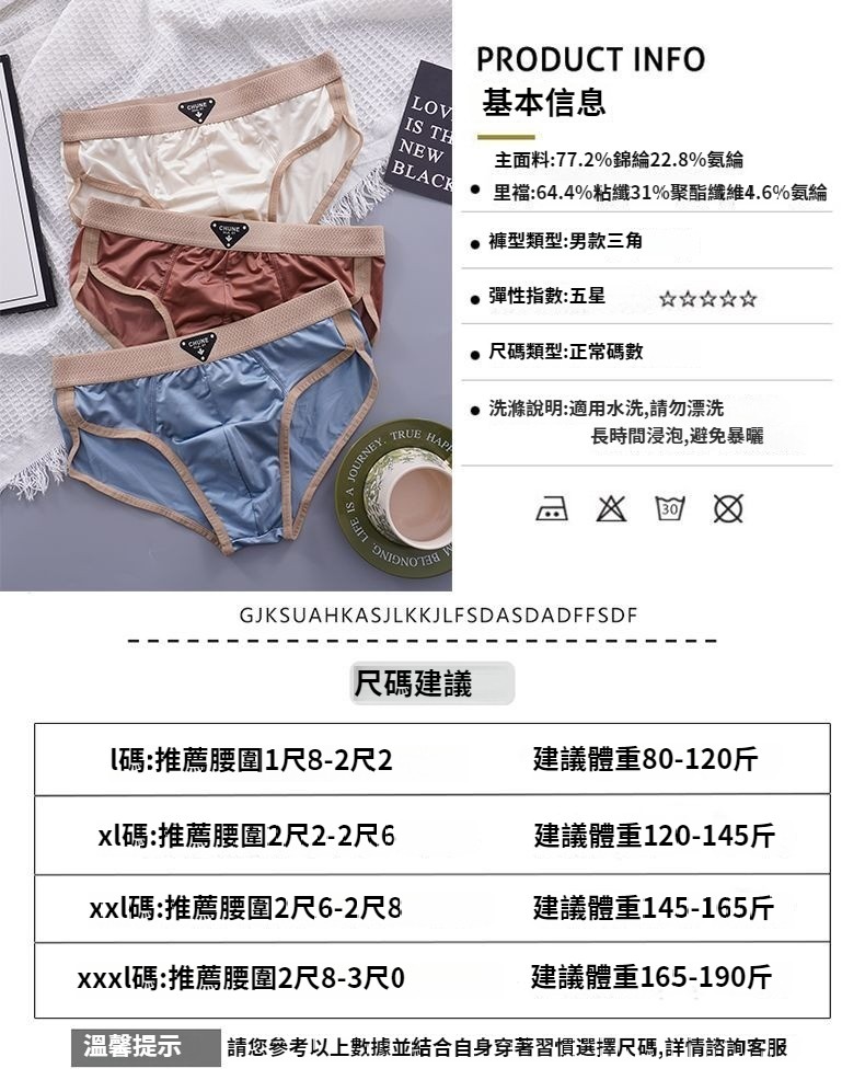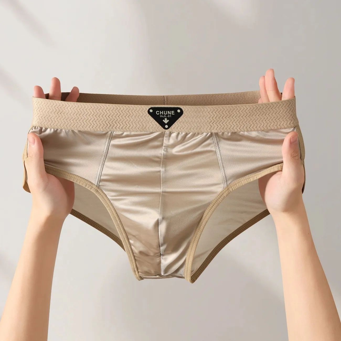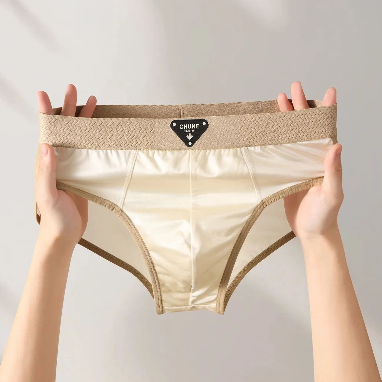 第 1 件 : 內褲男士青年三角透氣男生三角褲衩短褲男款冰絲夏季輕奢緞面褲頭