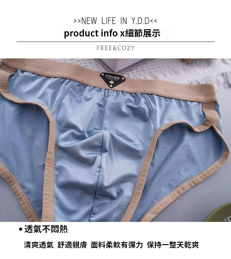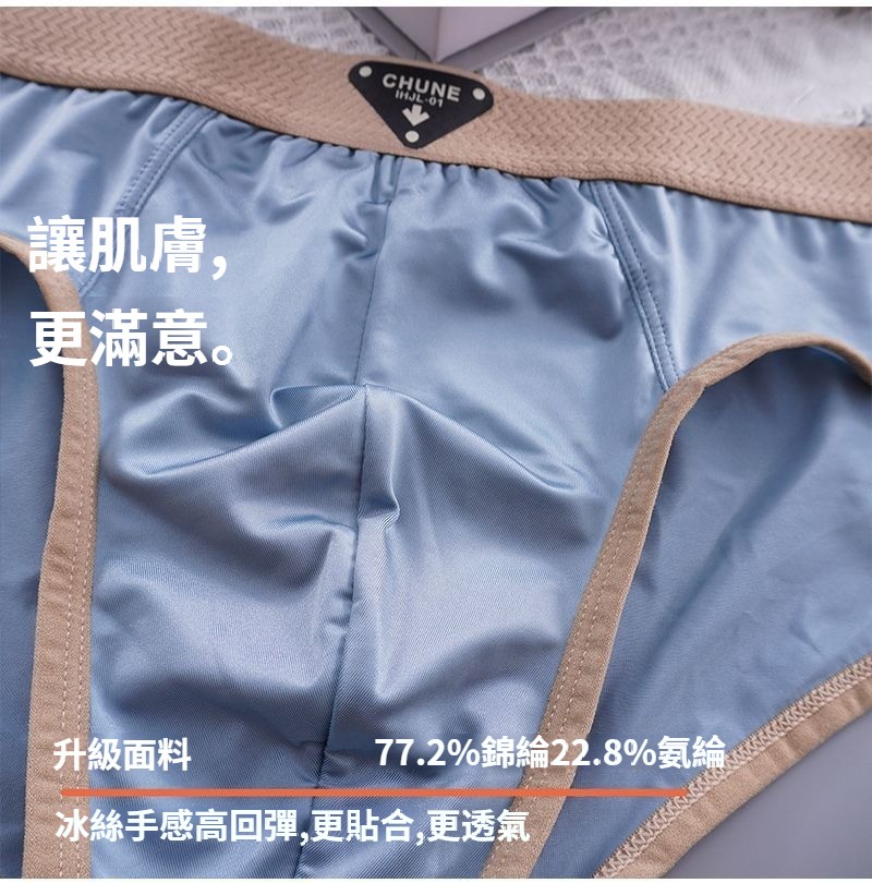 第 4 件 : 內褲男士青年三角透氣男生三角褲衩短褲男款冰絲夏季輕奢緞面褲頭