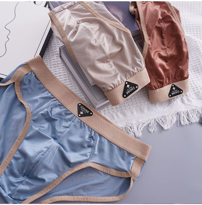 第 6 件 : 內褲男士青年三角透氣男生三角褲衩短褲男款冰絲夏季輕奢緞面褲頭